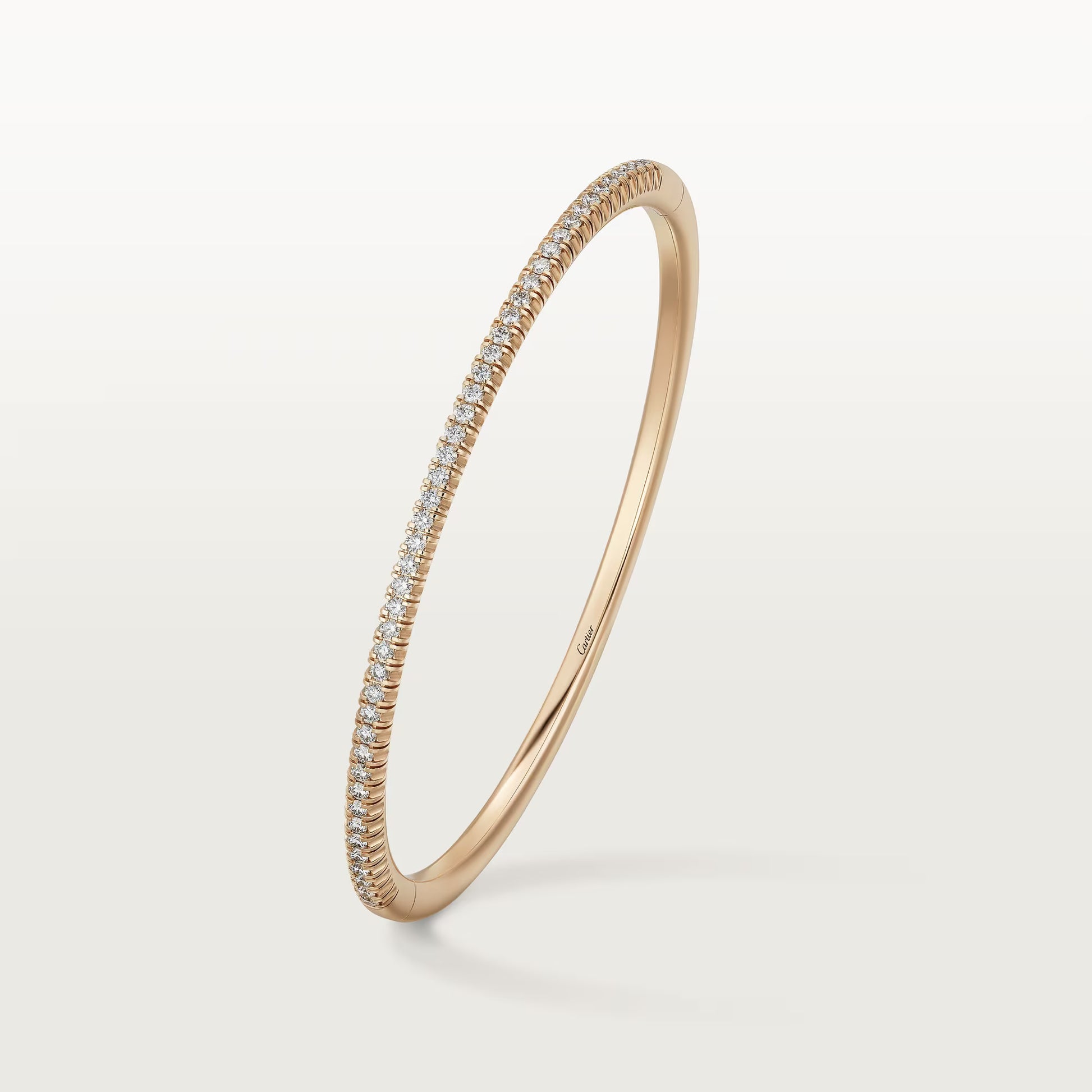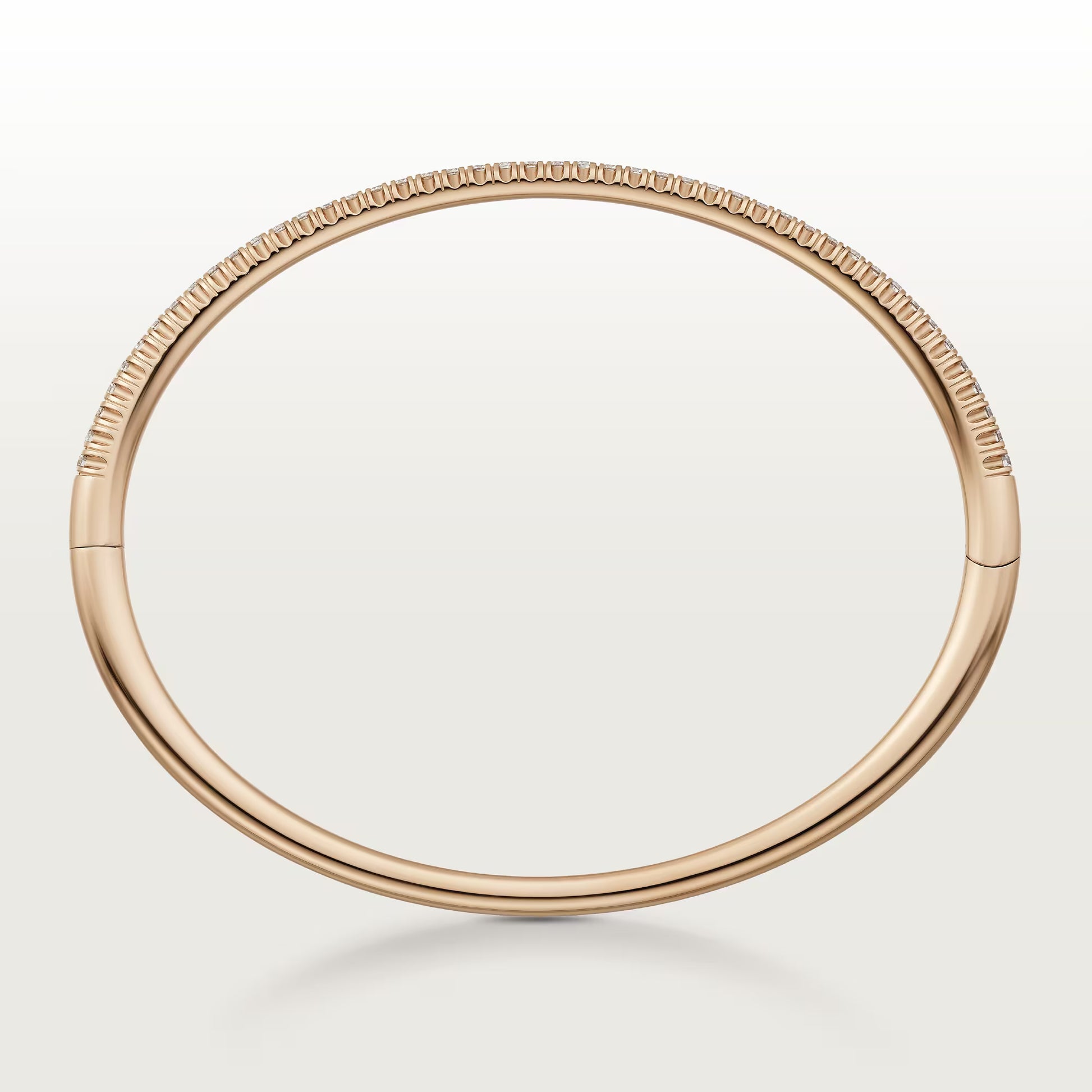 This Etincelle de Cartier bracelet in yellow gold showcases expert craftsmanship with its elegant half-paved diamond setting. The combination of polished gold and meticulously placed stones creates a refined shimmer, offering a sophisticated accessory.