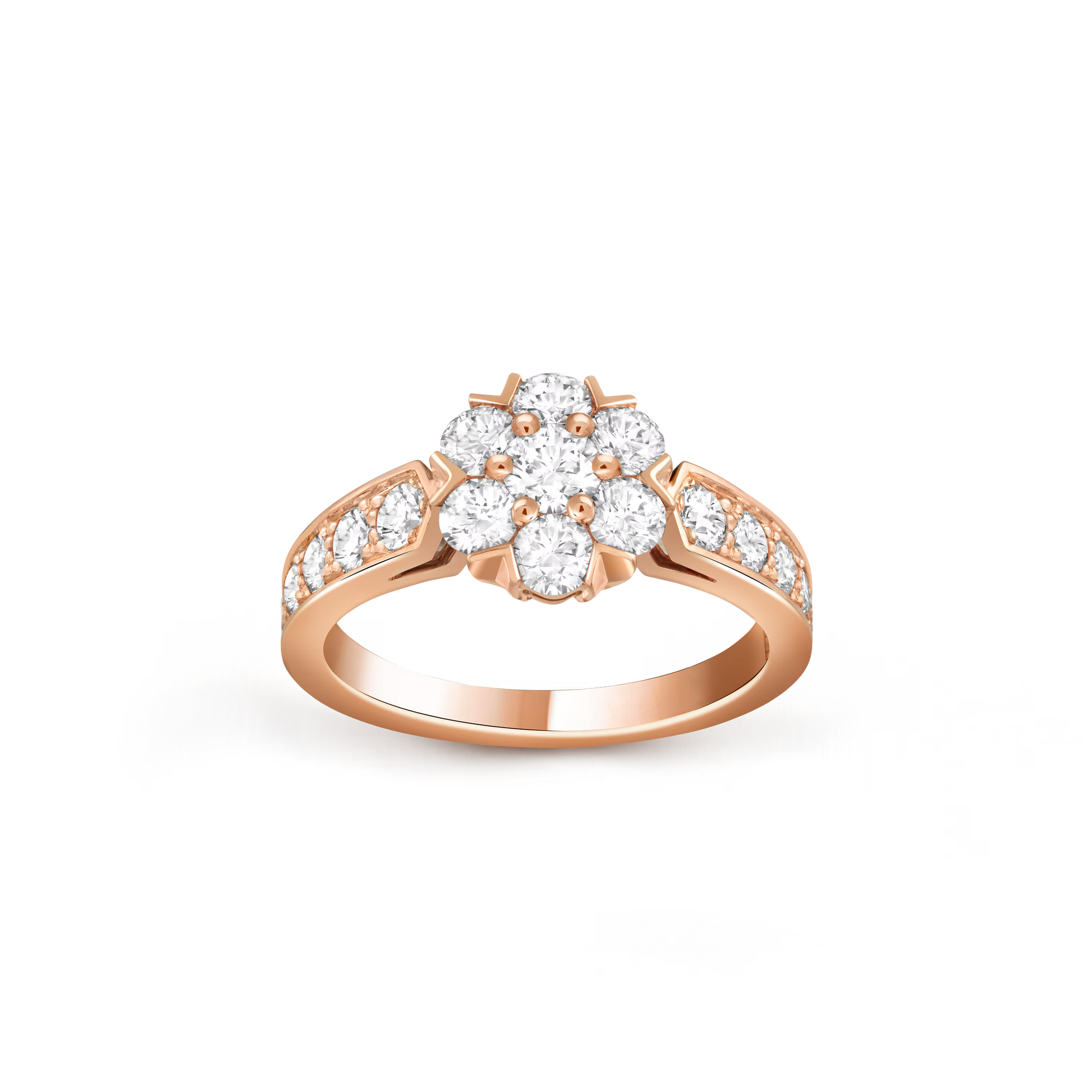 Expertly crafted in luxurious 18K rose gold, the Fleurette ring features precisely set round diamonds that enhance its refined elegance.