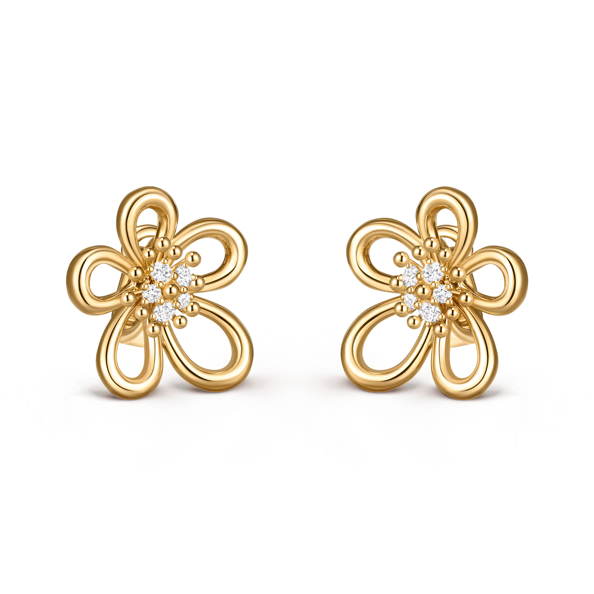 Crafted in yellow gold, these small Flowerlace earrings feature expertly set round diamonds that capture light with refined brilliance. Their subtle floral-inspired design adds an elegant touch to any look, combining timeless craftsmanship with understated luxury.