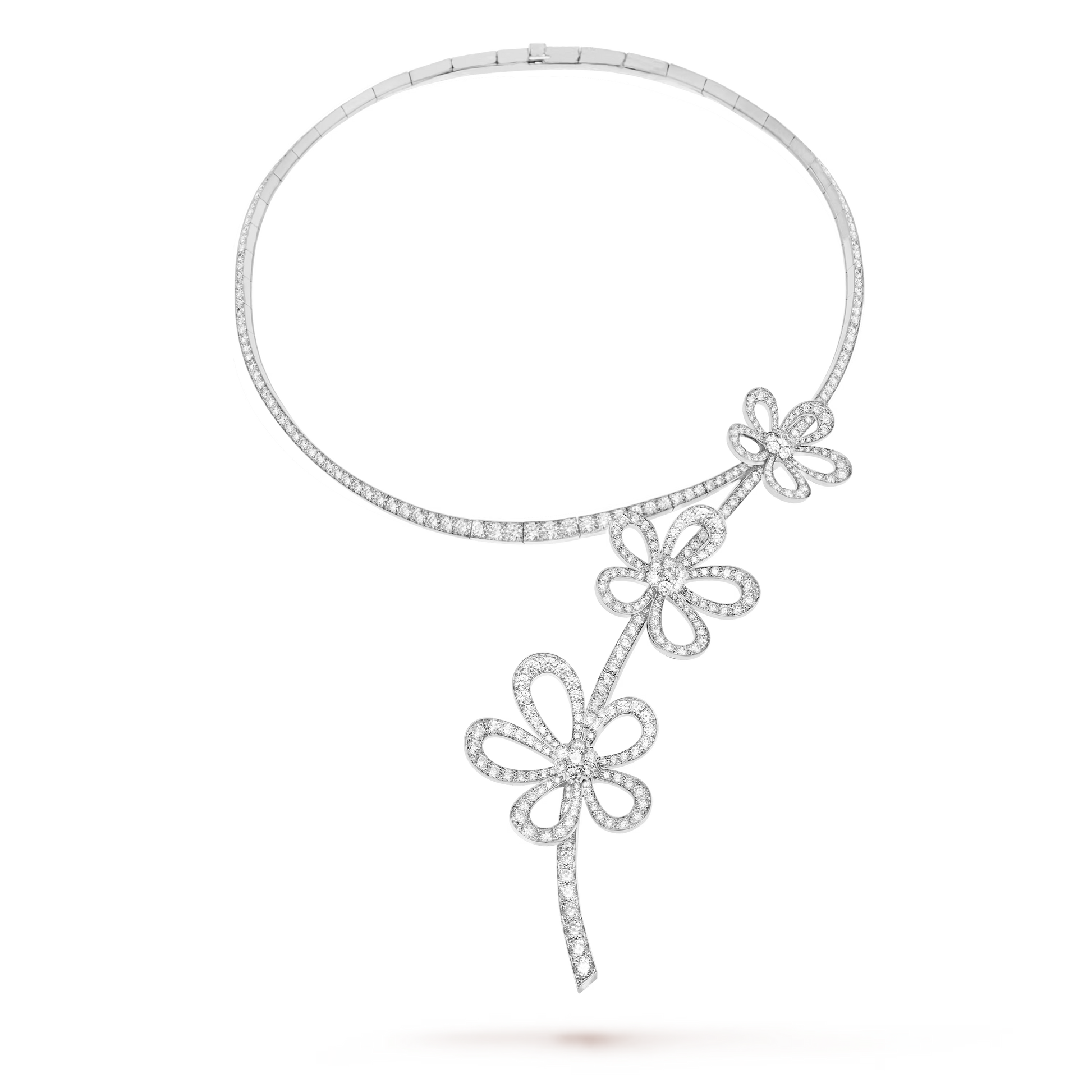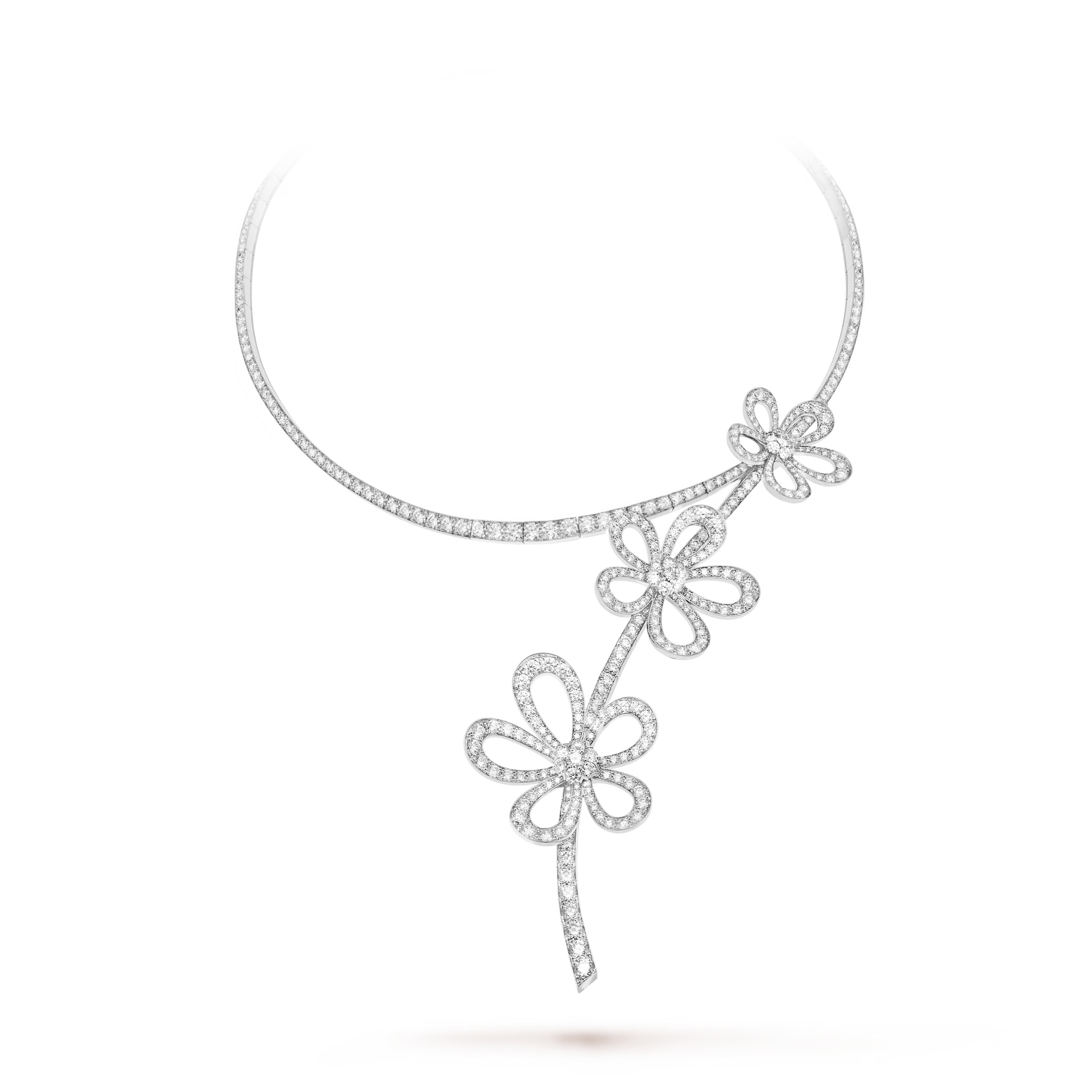 Flowerlace necklace, Rhodium plated 18K white gold, diamonds.