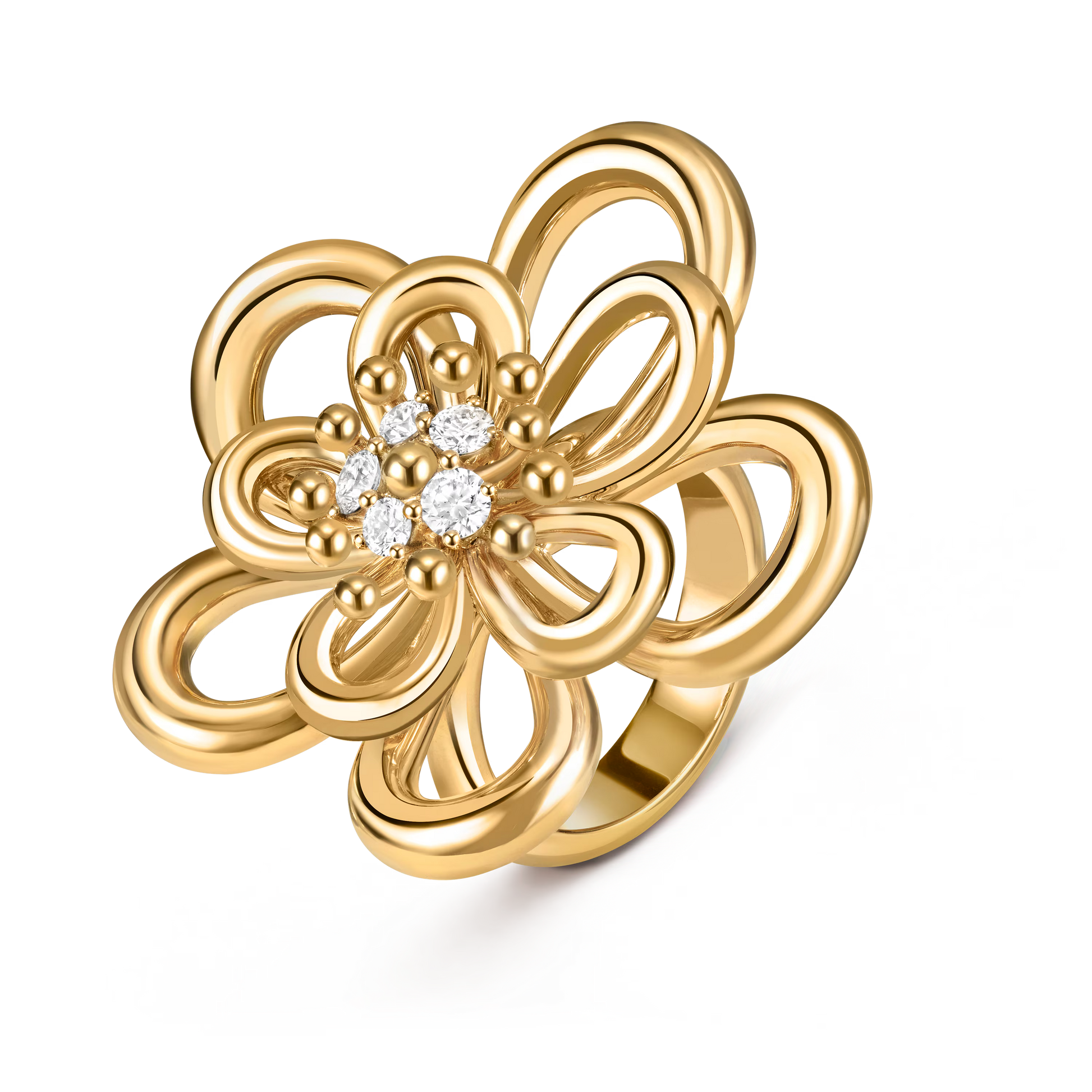 Crafted with precision, the Flowerlace ring features a medium-sized band in warm yellow gold, elegantly accented by carefully selected round diamonds.