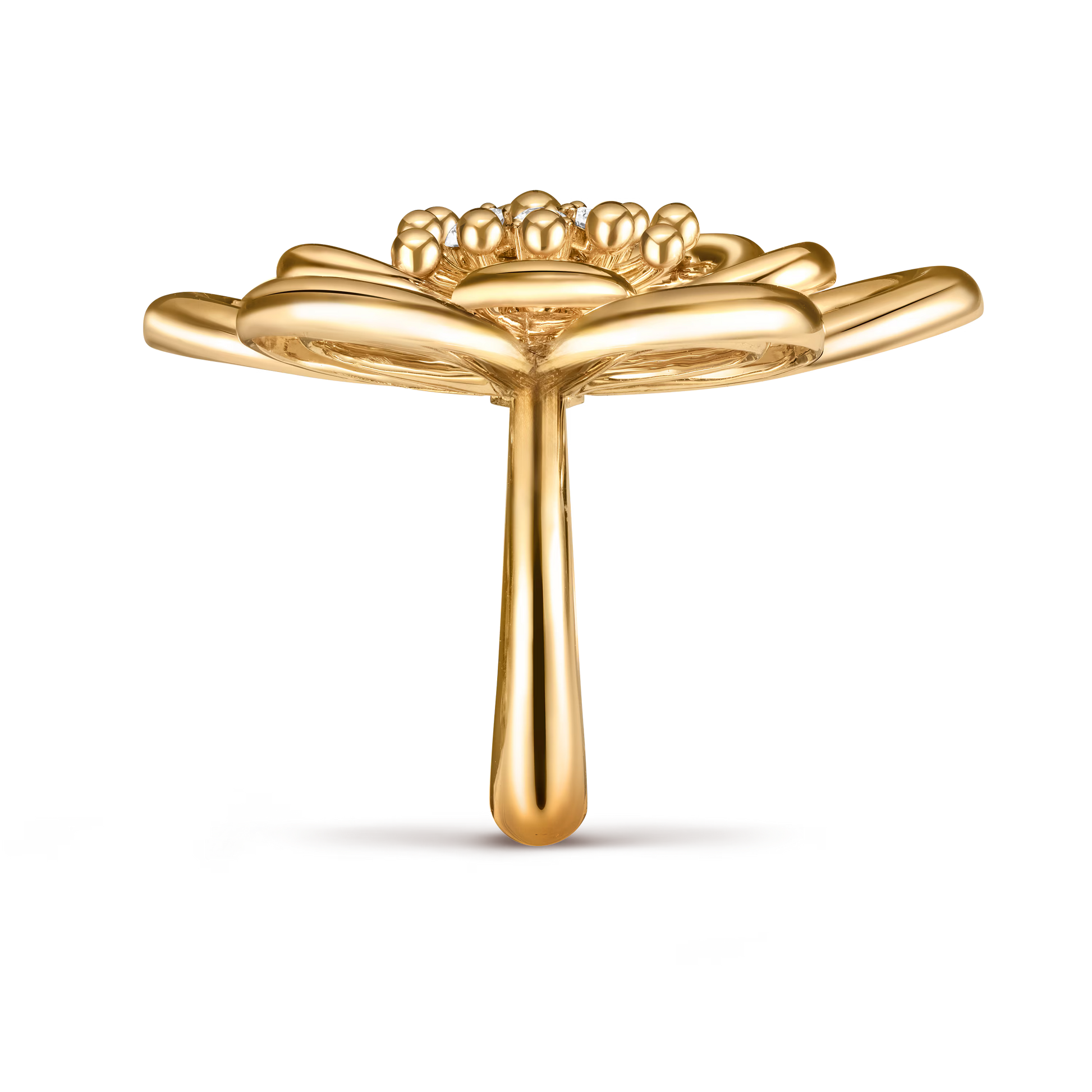 Flowerlace ring, medium model, yellow gold, round diamonds.