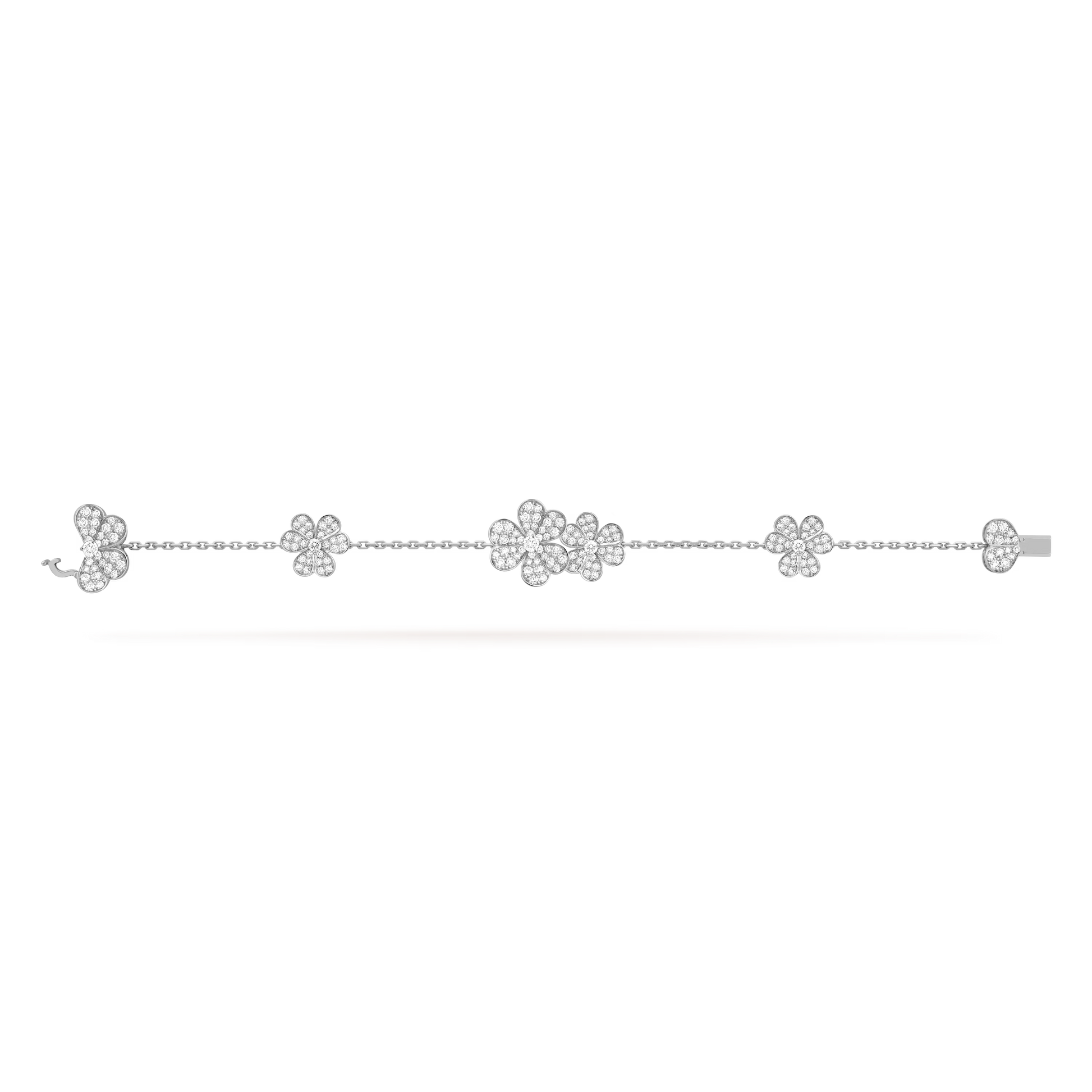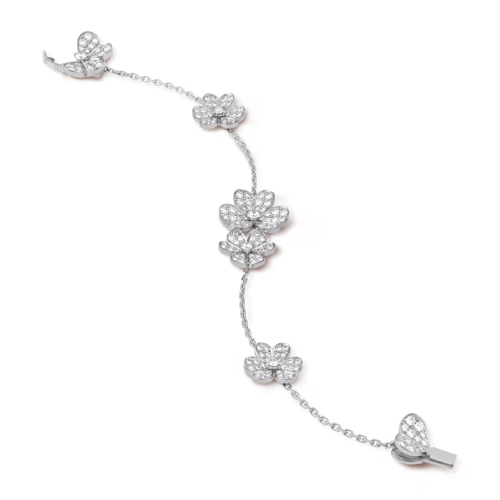 Frivole bracelet, 5 flowers, rhodium plated 18K white gold, round diamonds.
