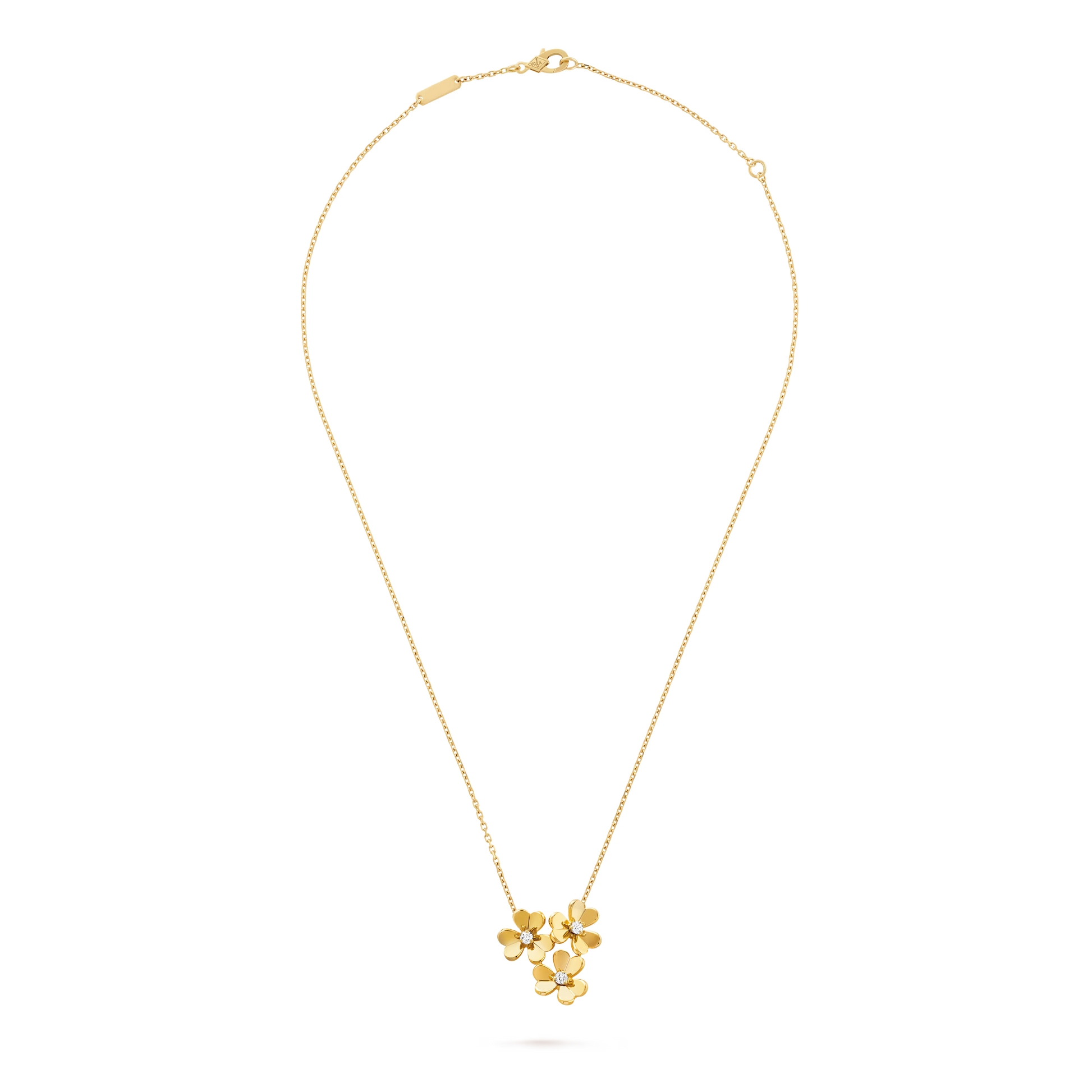 Frivole pendant, 3 flowers, mini model, 18K yellow gold, round diamonds.