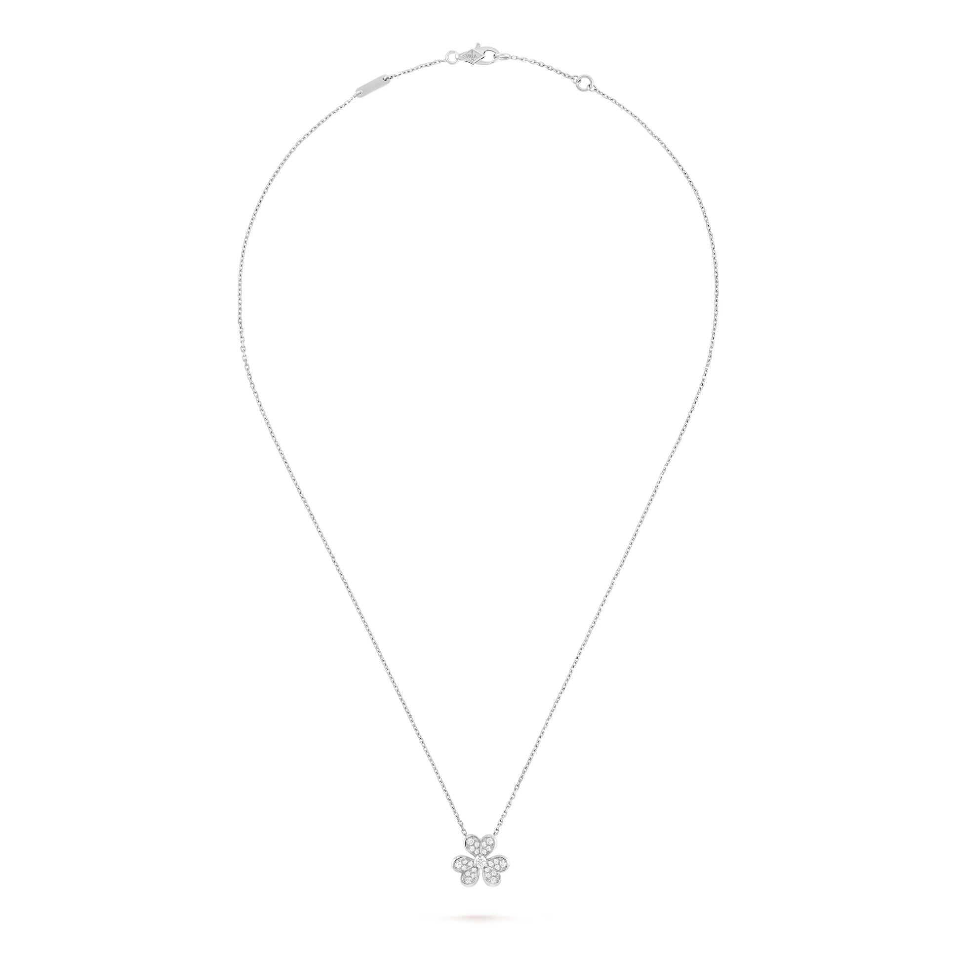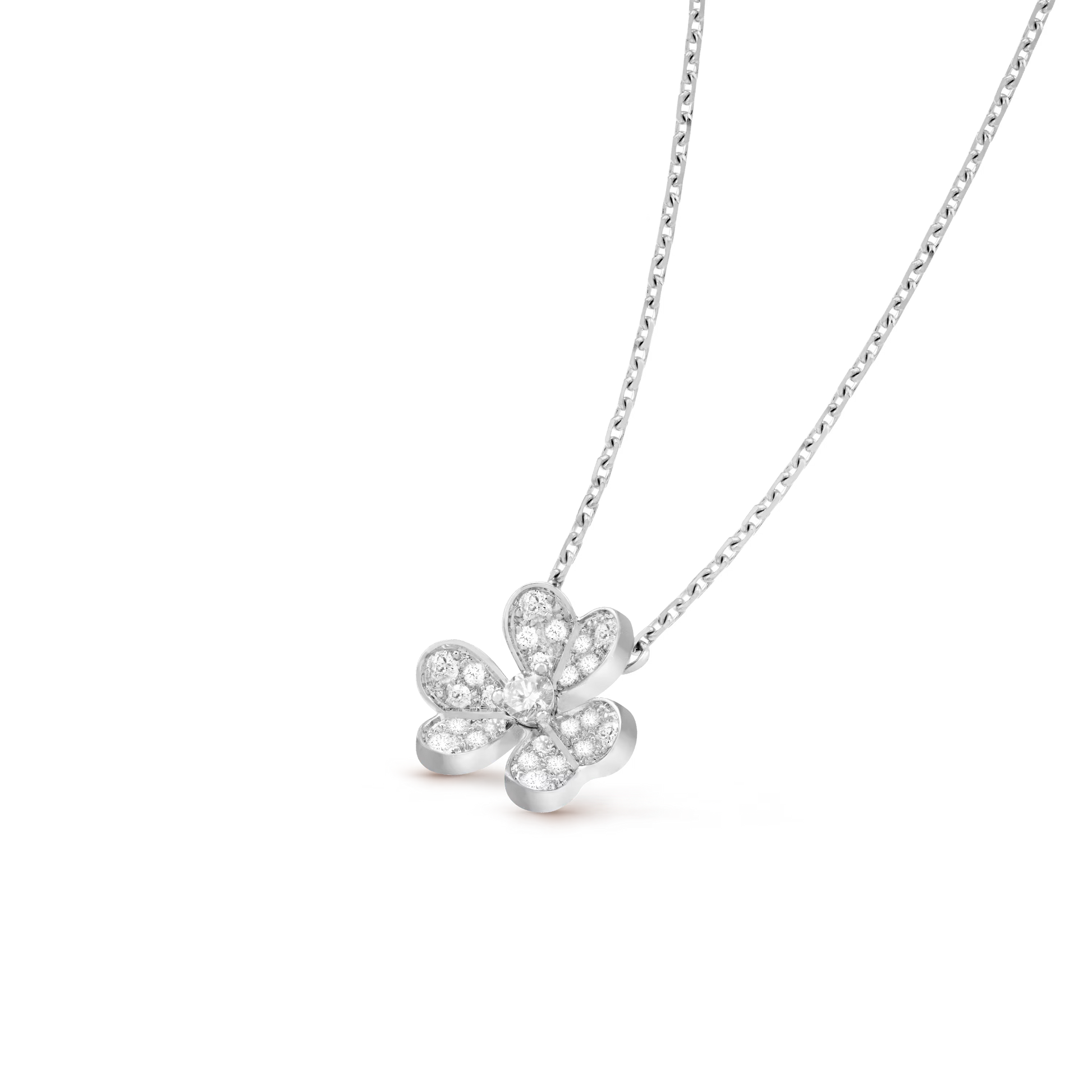 Frivole pendant, mini model, rhodium plated 18K white gold, round diamonds.