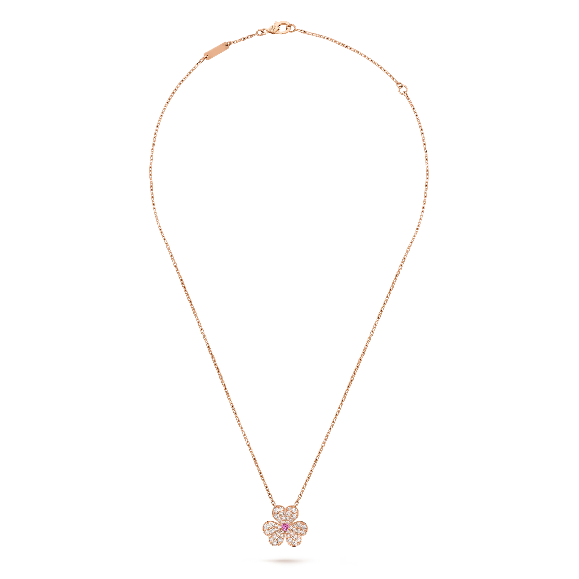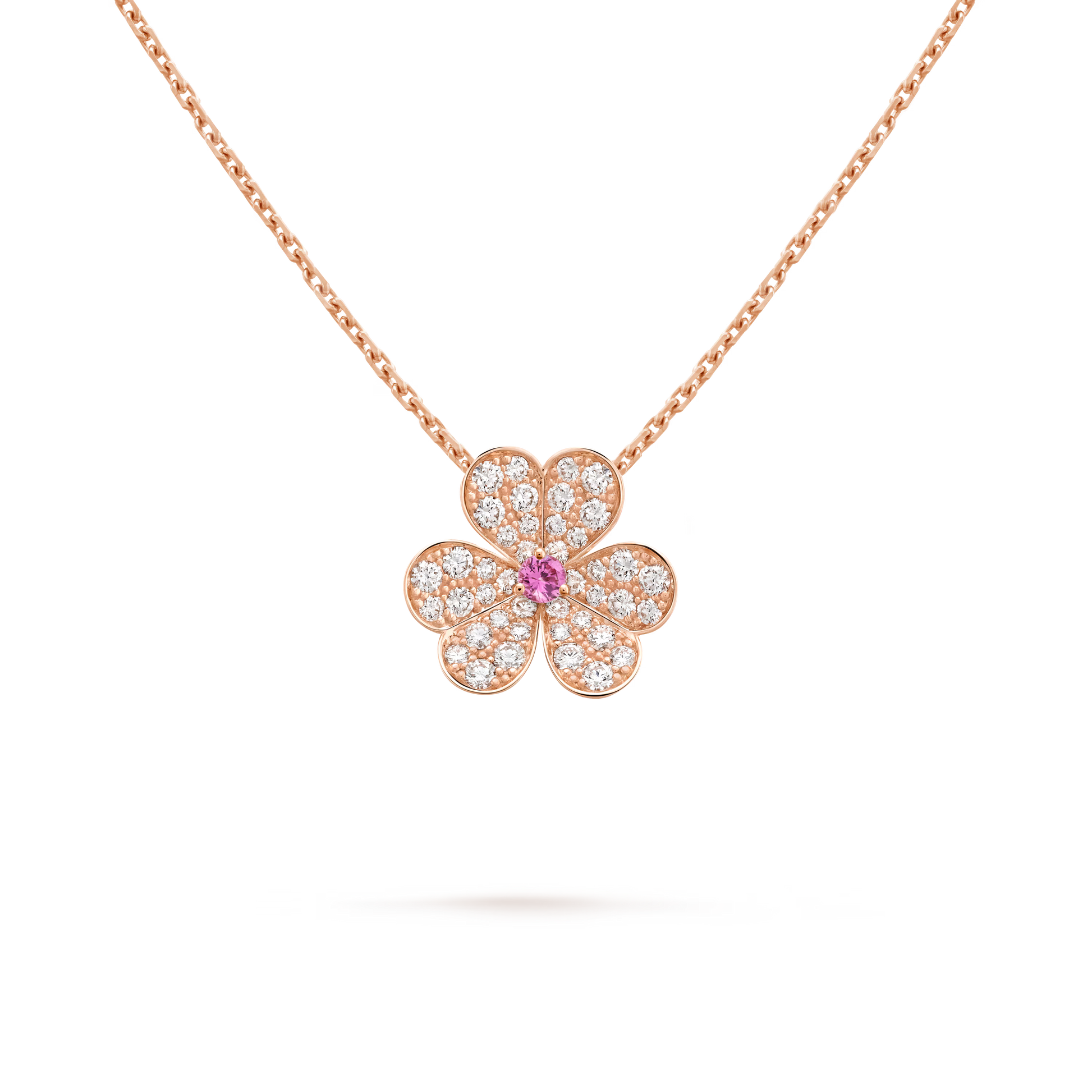 Frivole pendant, small model, 18K rose gold, round pink sapphire, round diamonds.