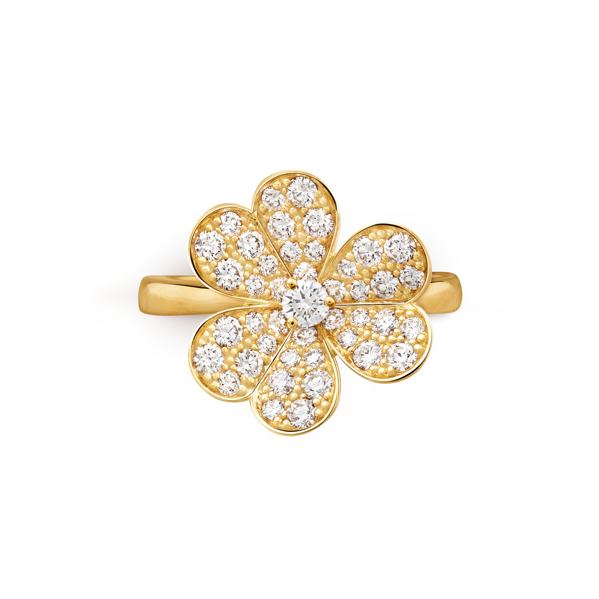 Frivole ring, 1 flower, small model, 18K yellow gold, round diamonds.