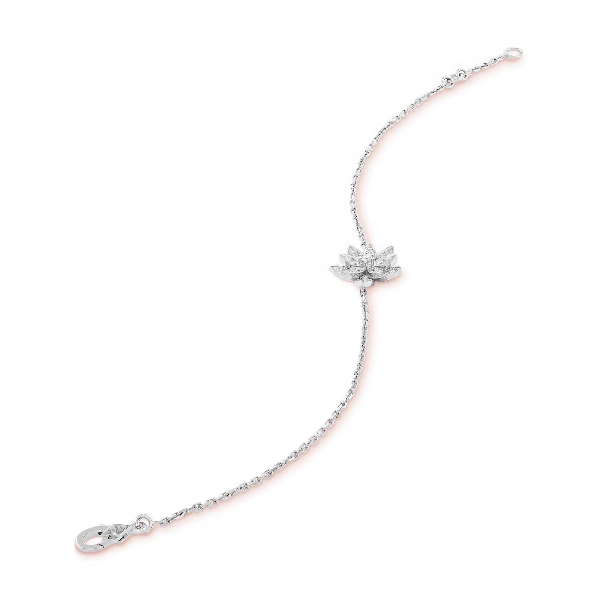 Lotus openwork bracelet, mini model, rhodium plated 18K white gold, round diamonds.