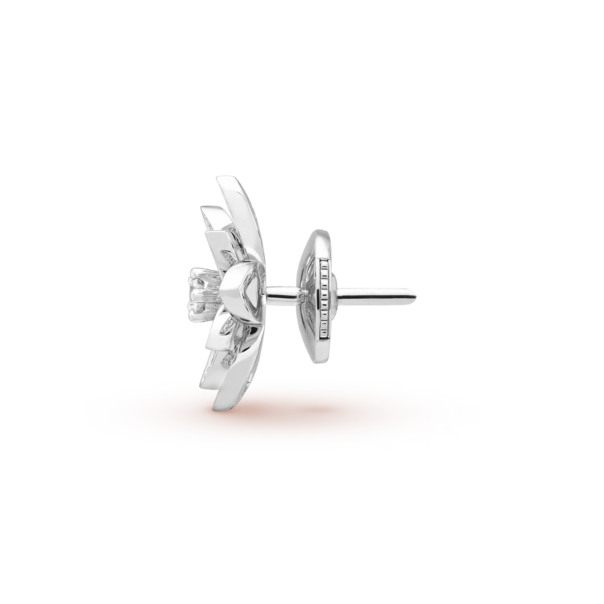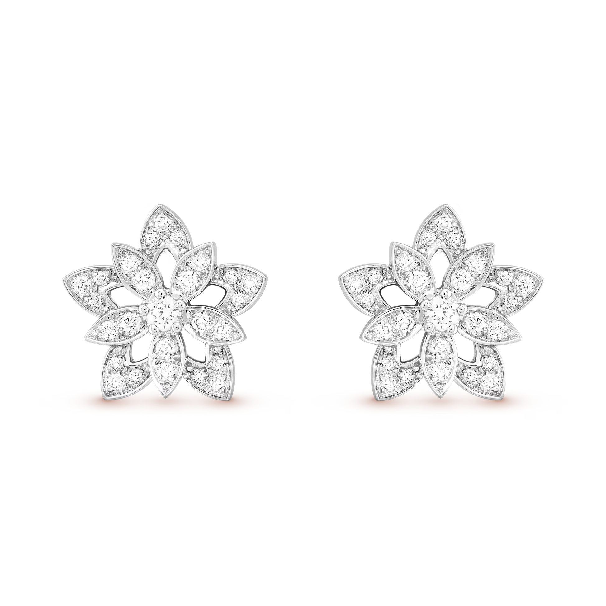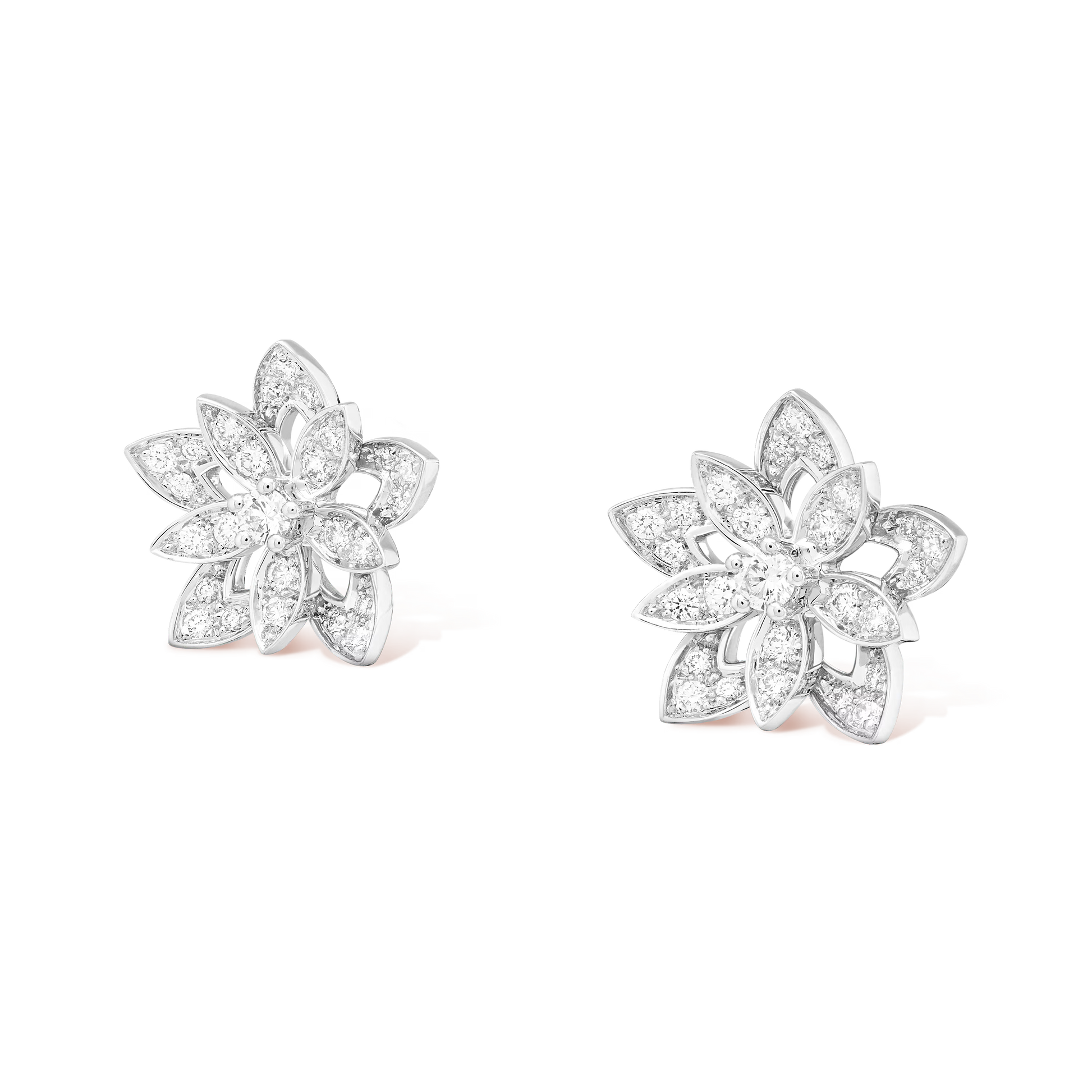 Lotus openwork earrings, mini model, rhodium plated 18K white gold, round diamonds.