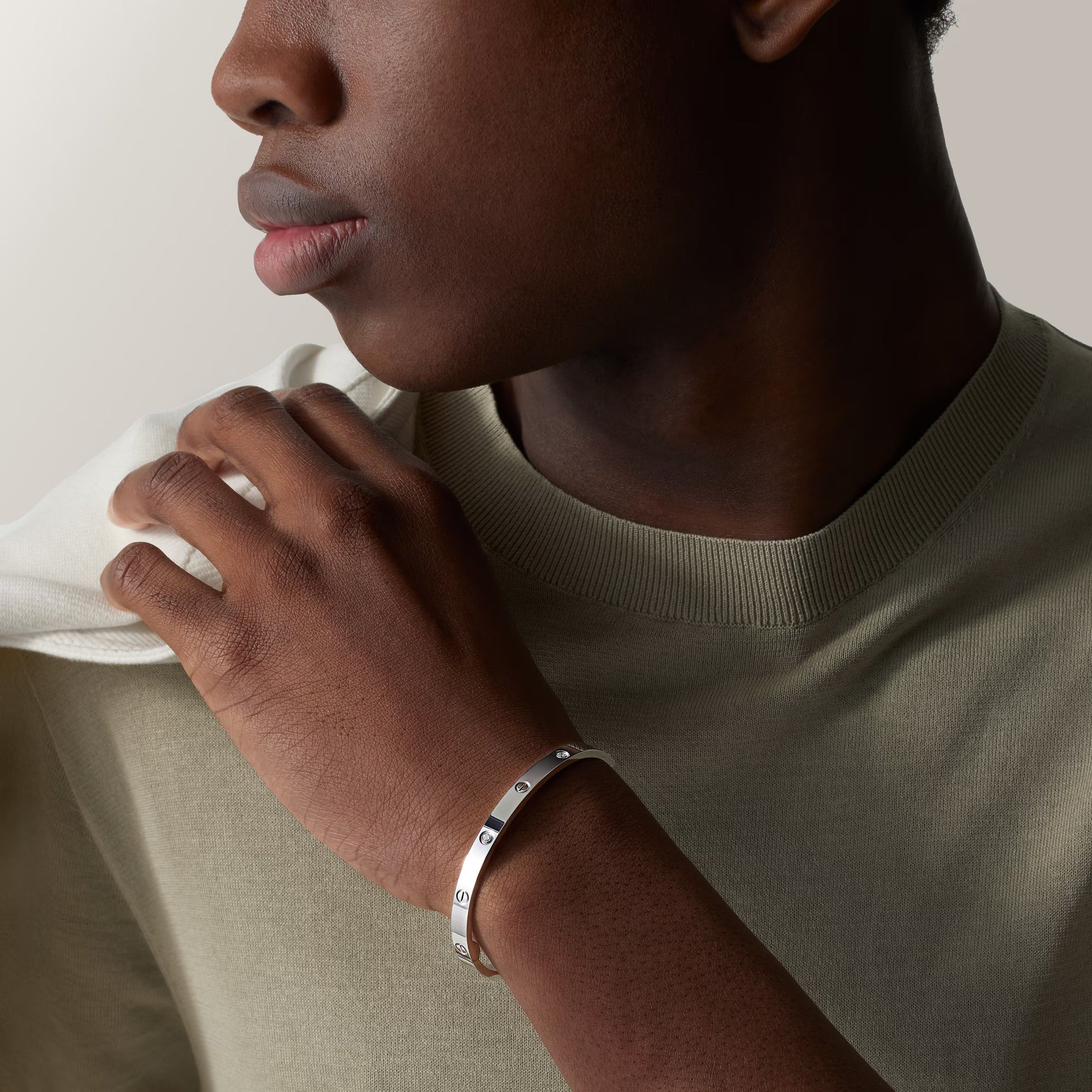 Crafted in 18K white gold, this medium-sized LOVE bracelet features four precisely set diamonds that add subtle brilliance.