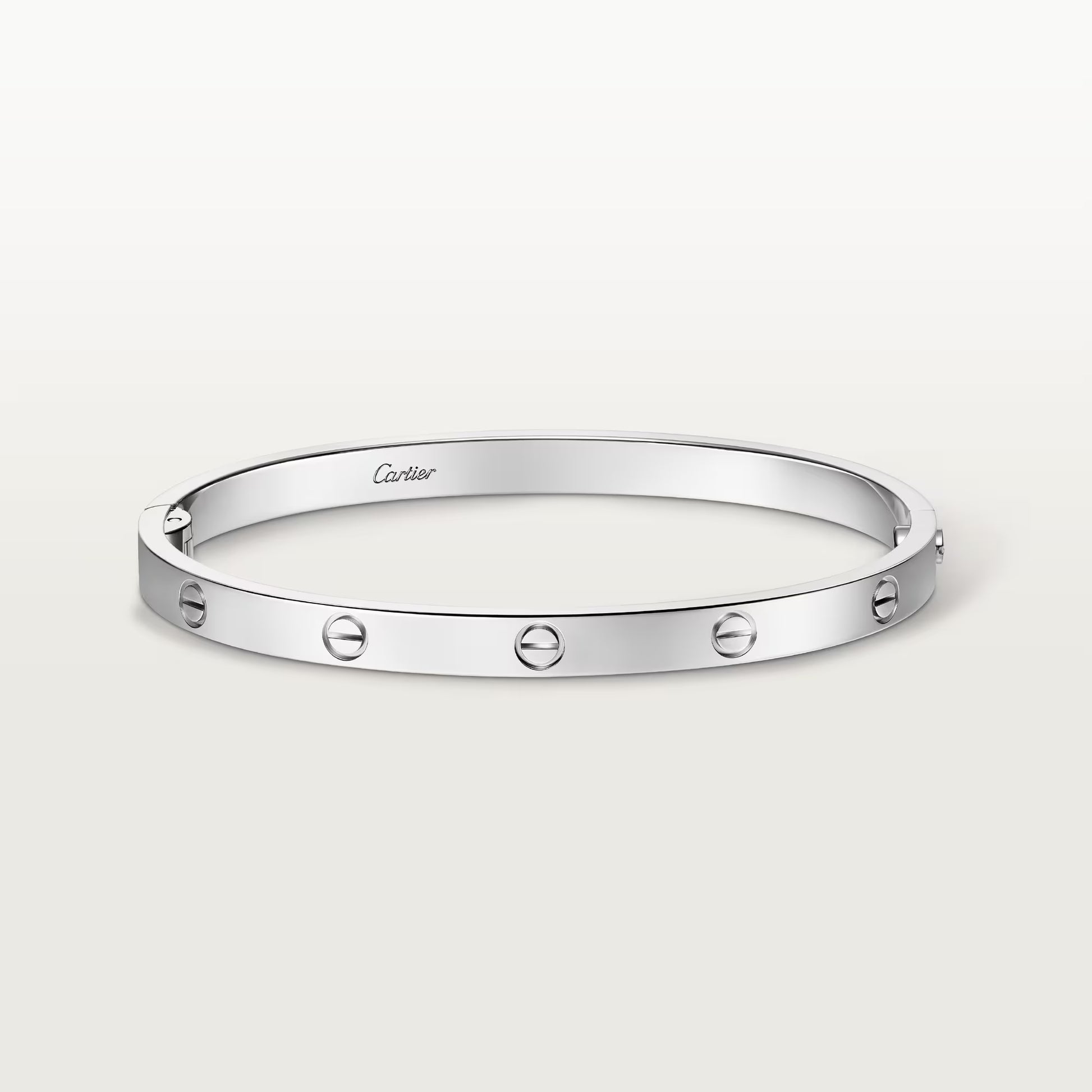 Crafted in 18K white gold, this medium-sized LOVE bracelet offers a refined balance of elegance and durability. Its timeless design embodies sophistication, making it an ideal piece for everyday wear or special occasions.