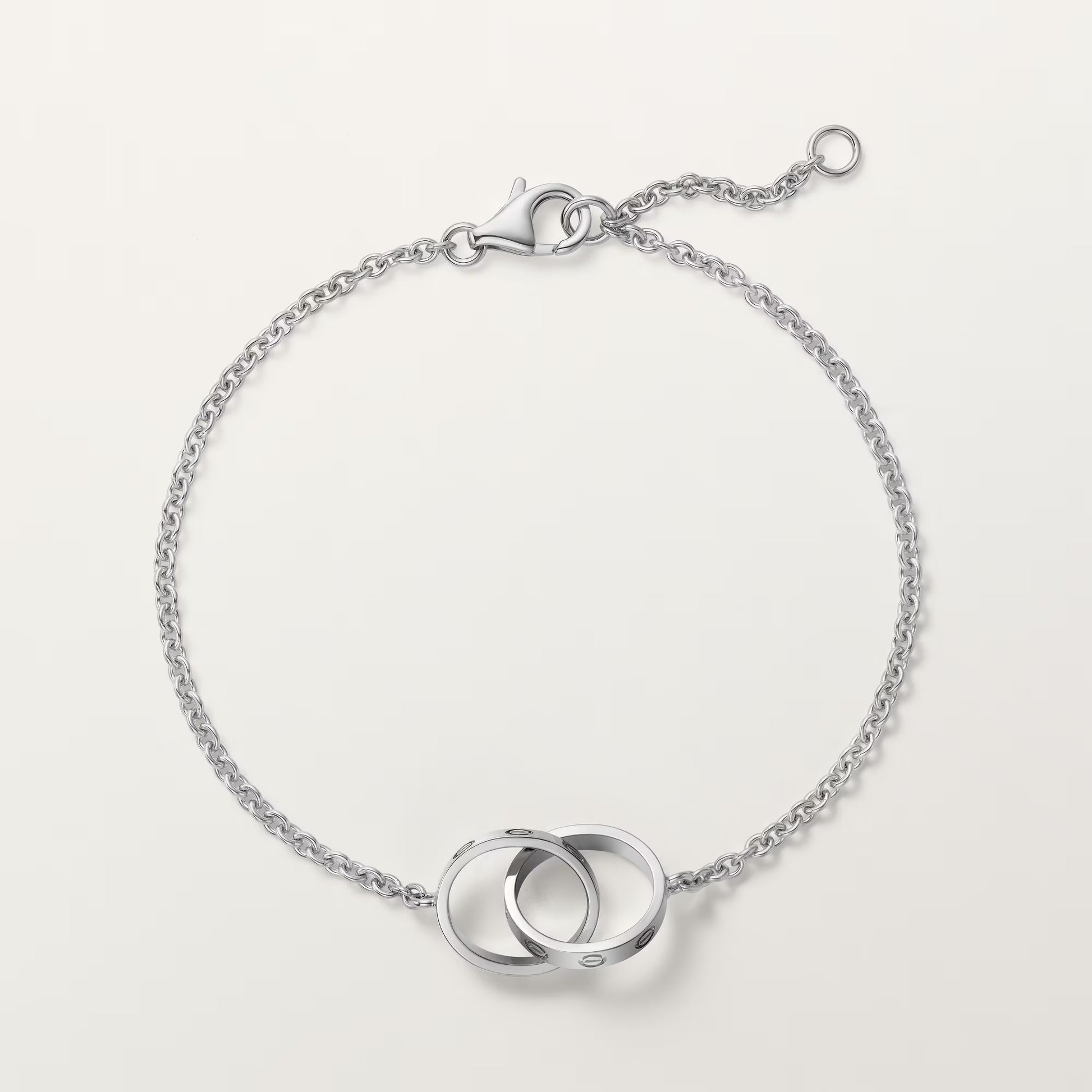 This 18K white gold LOVE bracelet features a delicate chain design that embodies timeless elegance. Crafted with precision, it offers a subtle yet sophisticated accent for daily wear or special occasions.