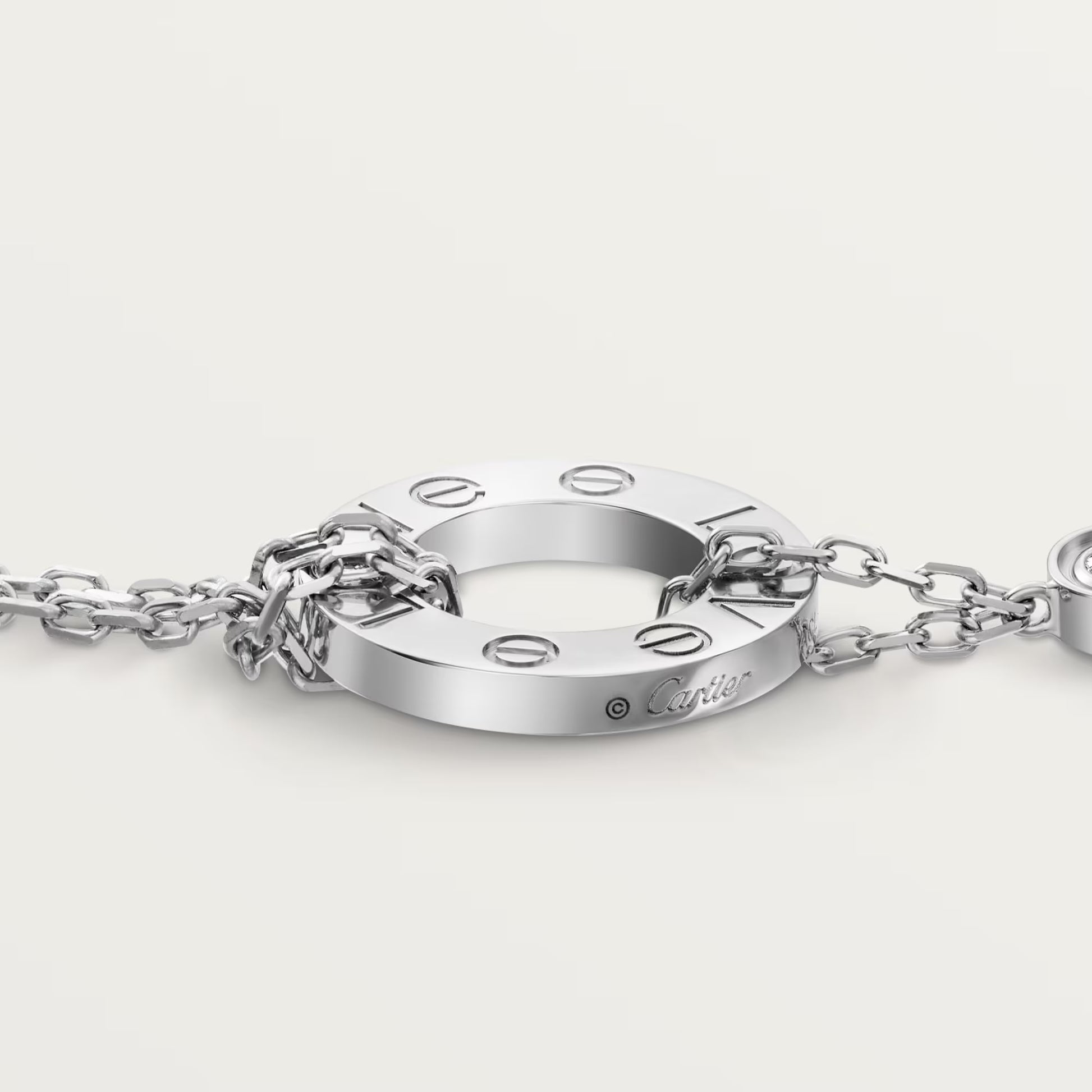 LOVE bracelet 18K white gold, on chain, 2 diamonds.