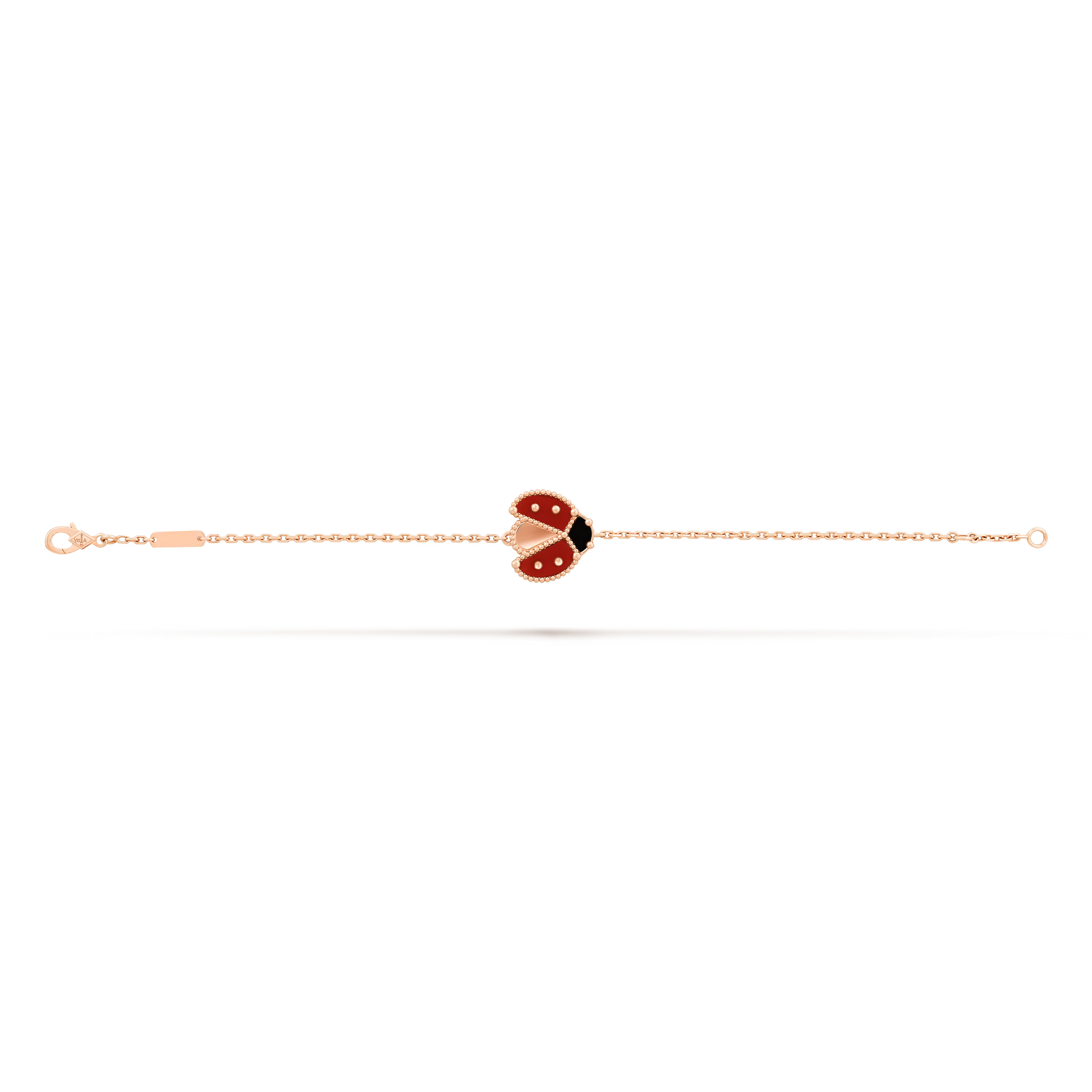 Lucky Spring bracelet, open wings ladybug, 18K rose gold, onyx, carnelian.