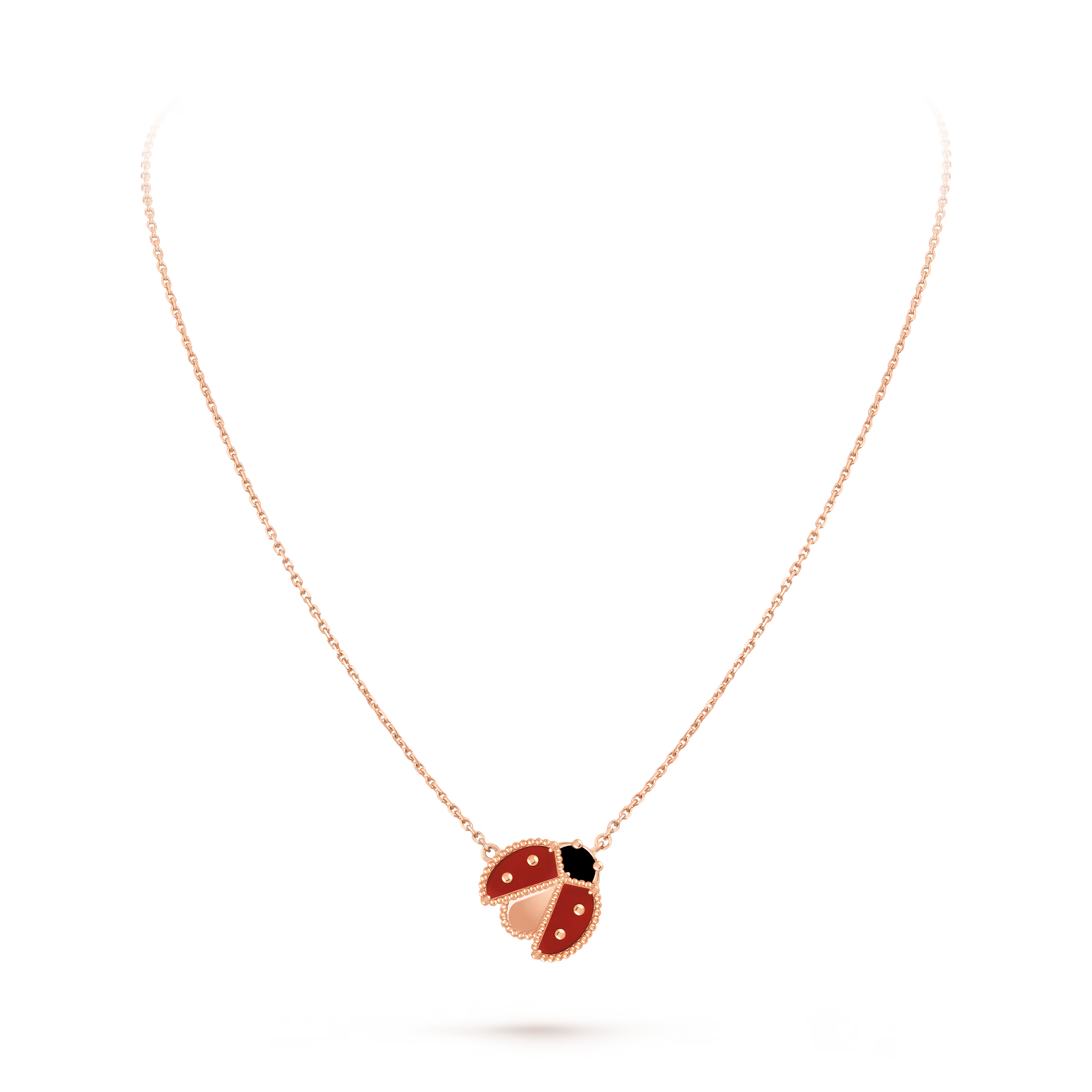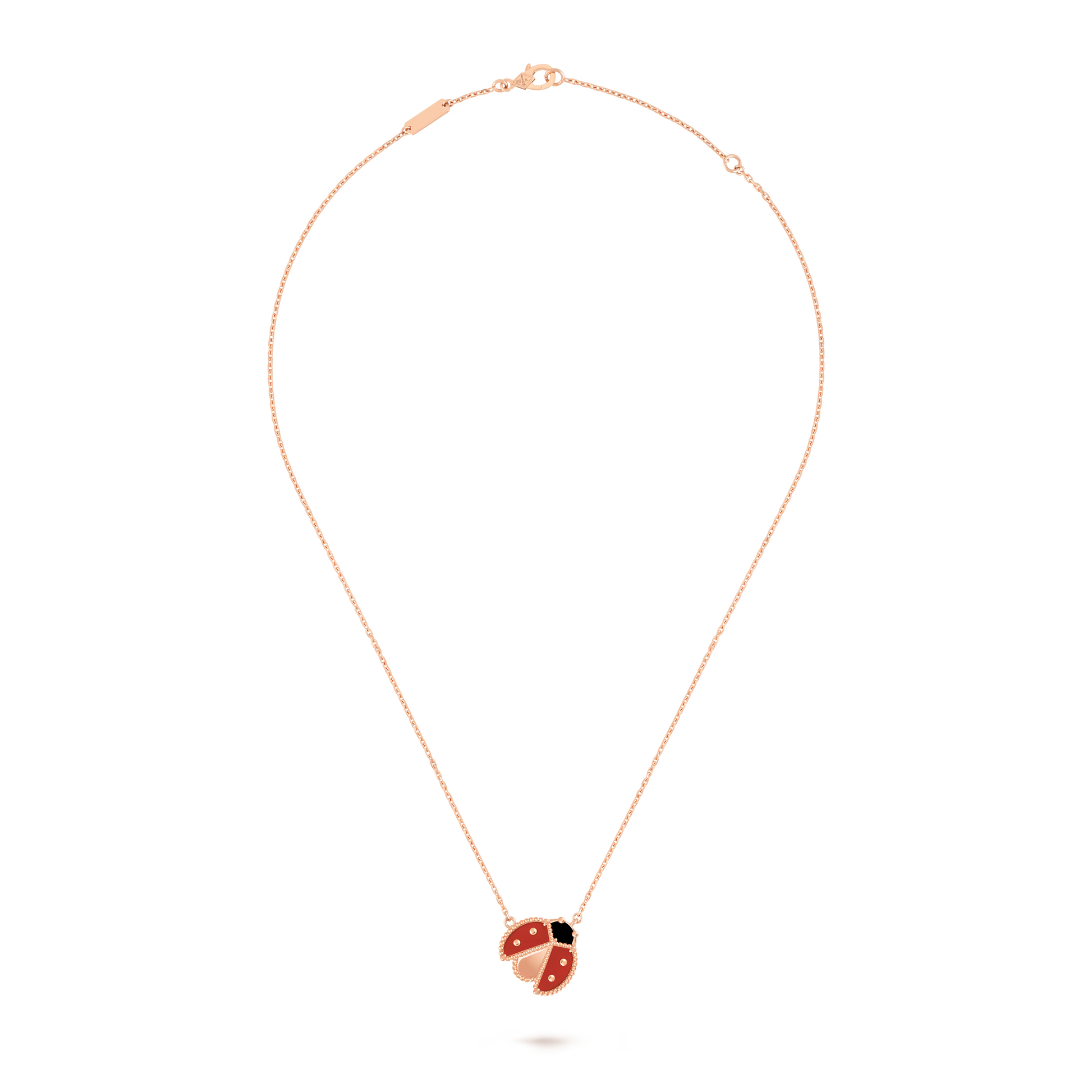 Lucky Spring pendant, open wings ladybug, 18K rose gold, carnelian, onyx.