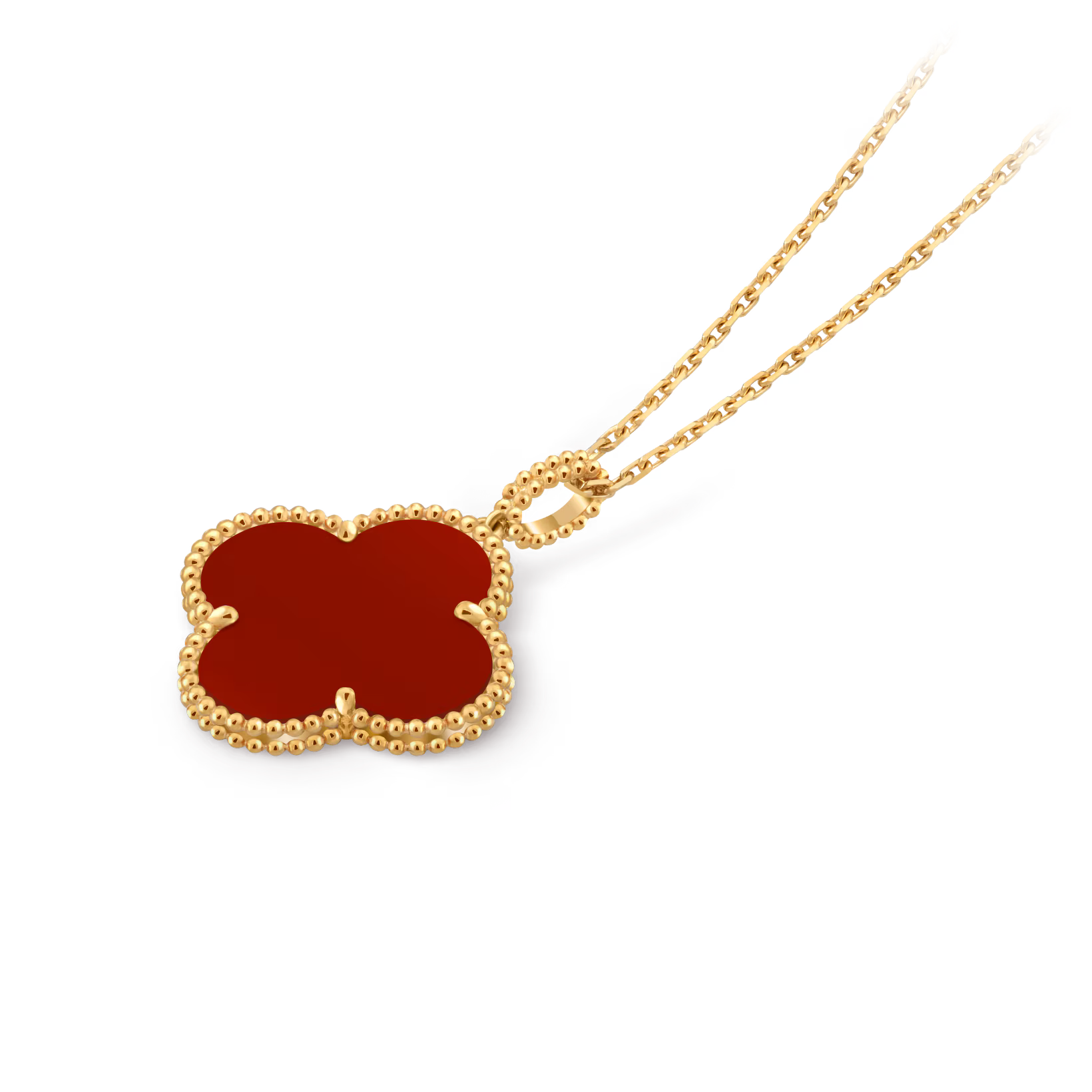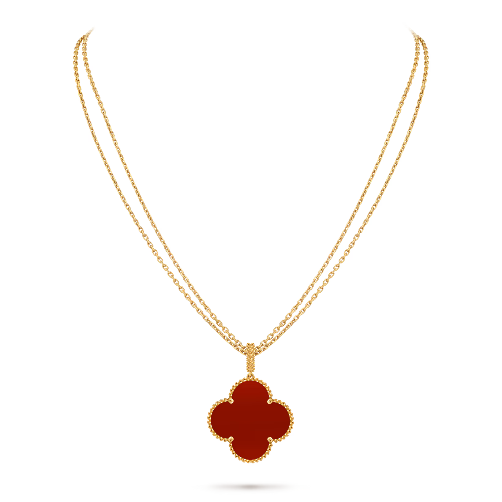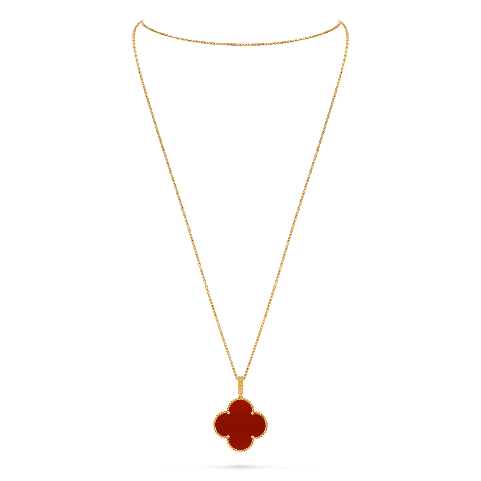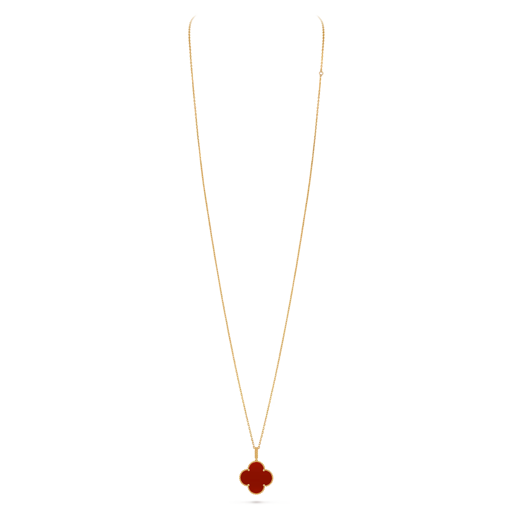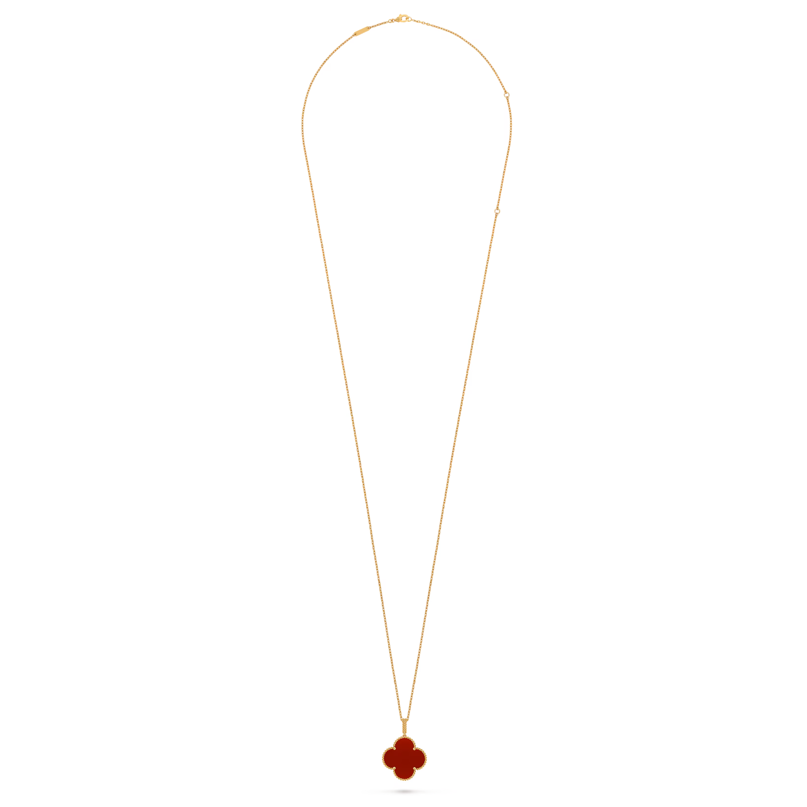 Crafted in 18K yellow gold, this Magic Alhambra long necklace features a single large clover motif in vibrant carnelian, adding a bold and elegant touch. If you have any questions, please contact us on WhatsApp.
