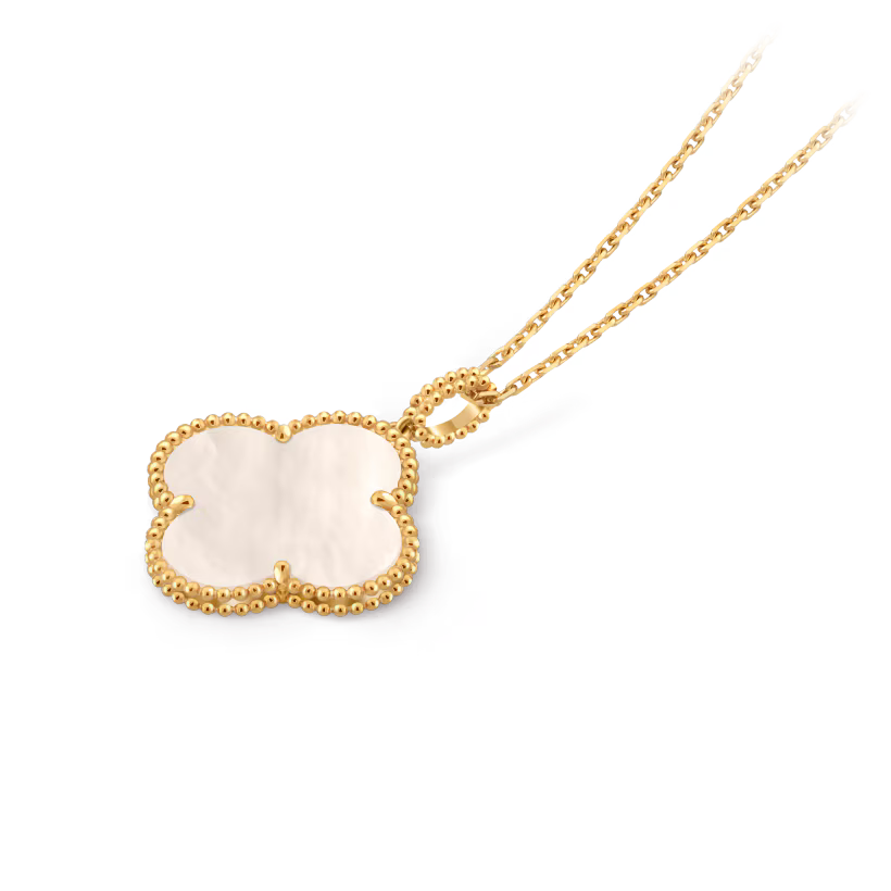 Magic Alhambra long necklace 1 motif, 18K yellow gold, white mother-of-pearl.