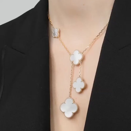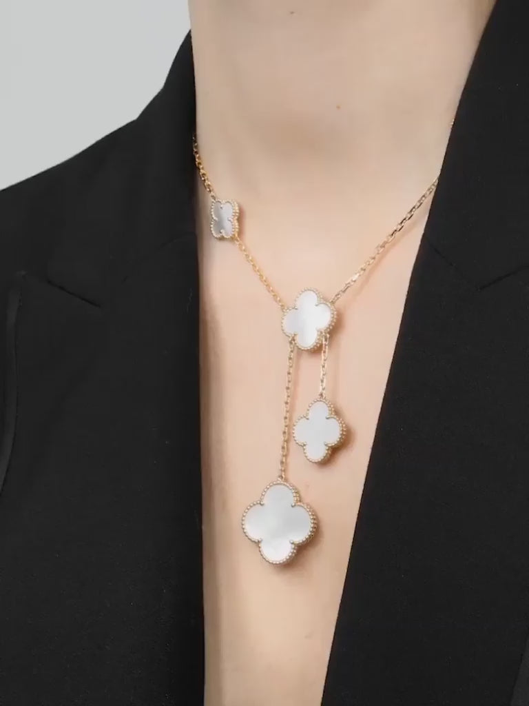 Magic Alhambra necklace, 6 motifs, 18K yellow gold, white mother-of-pearl.