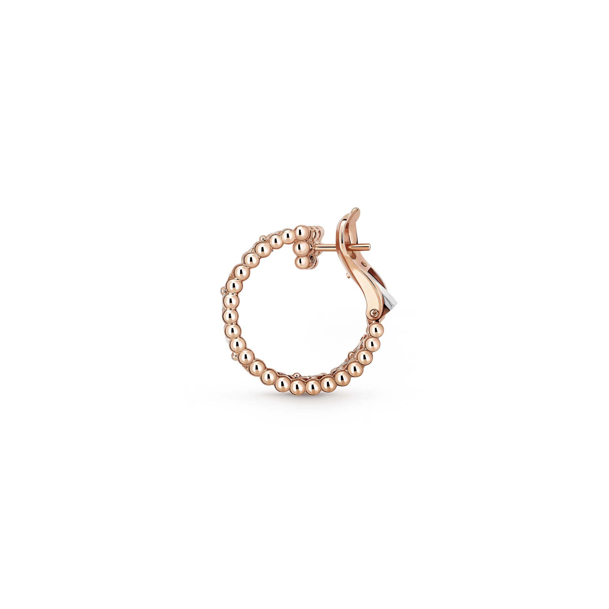 Perlée clovers hoop earrings, 18K rose gold, round diamonds.