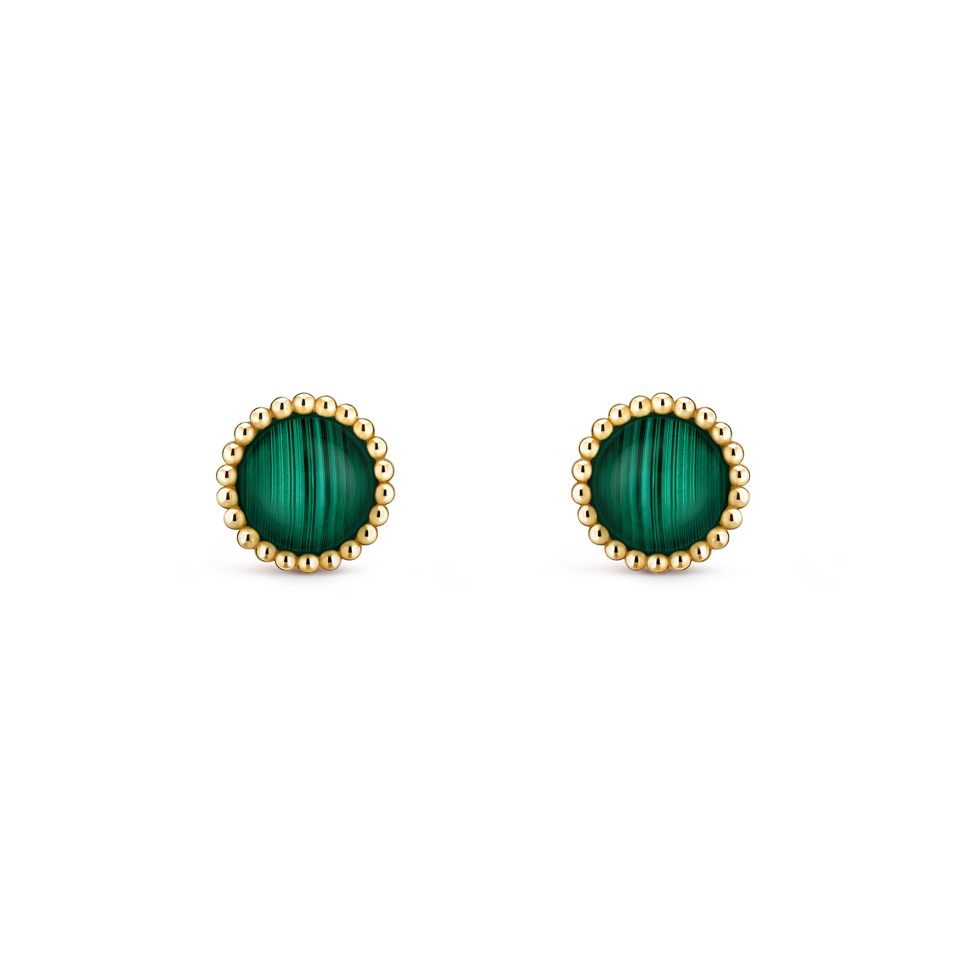 Perlée couleurs earrings crafted in 18K yellow gold feature vibrant malachite stones, blending precious metalwork with the rich green hues of natural malachite.