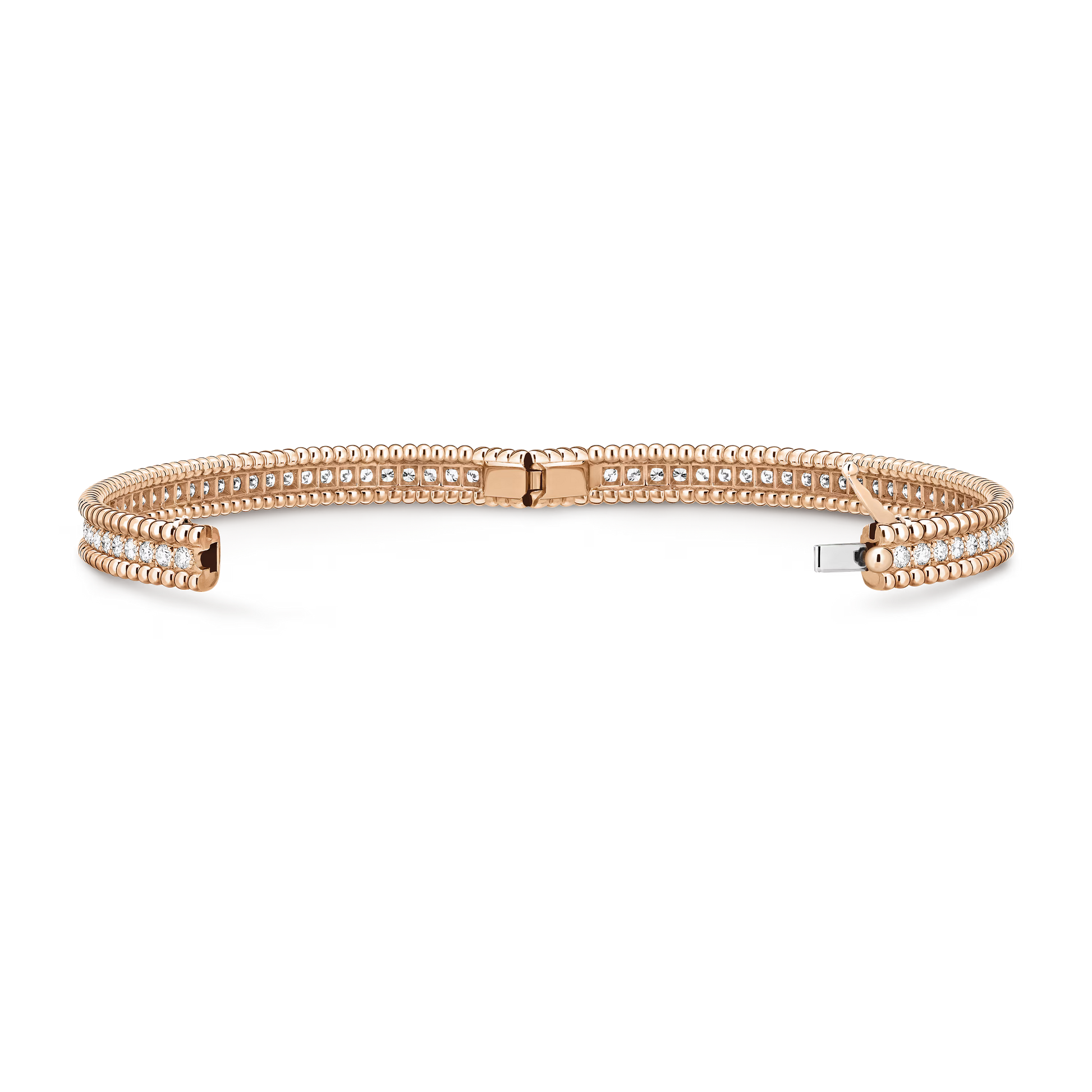 Perlée diamonds bracelet in 18K rose gold features a single row of precisely cut round diamonds, offering elegant brilliance with expert craftsmanship.
