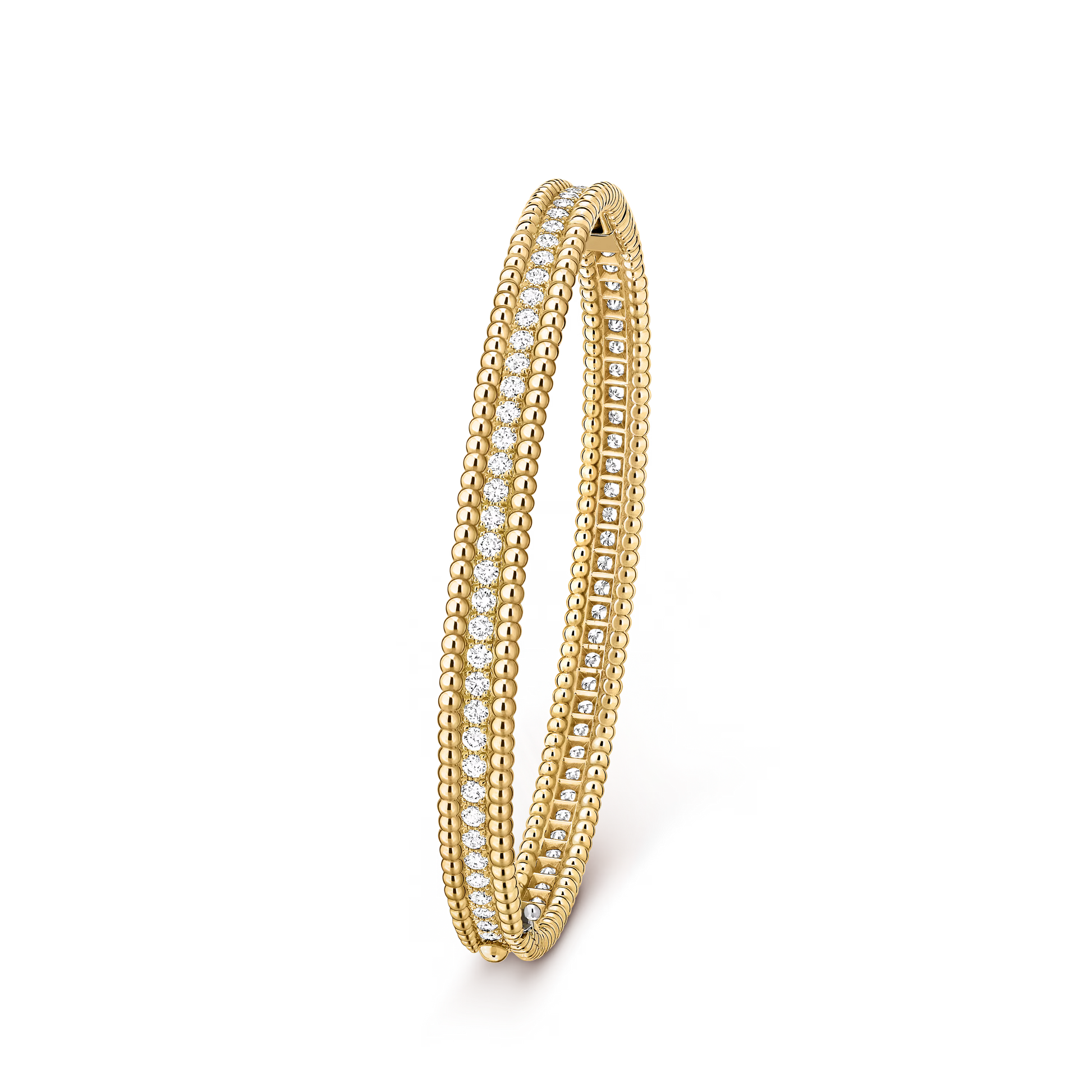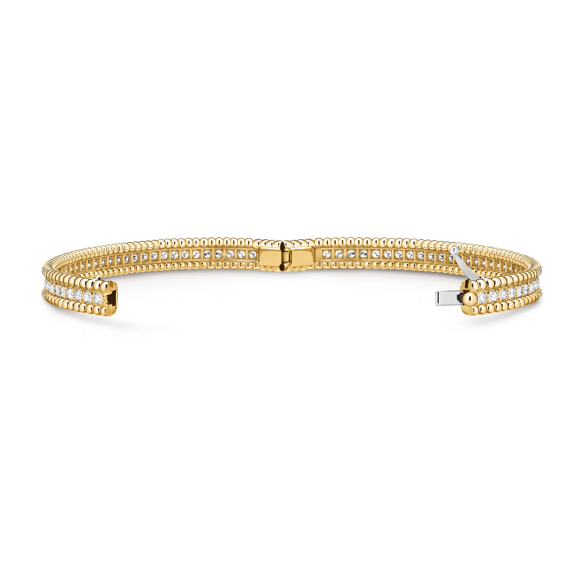 Perlée diamonds bracelet in a medium size showcases a single row of expertly set round diamonds, highlighting its understated elegance. Crafted from rich 18K yellow gold, this piece exemplifies fine jewelry craftsmanship.