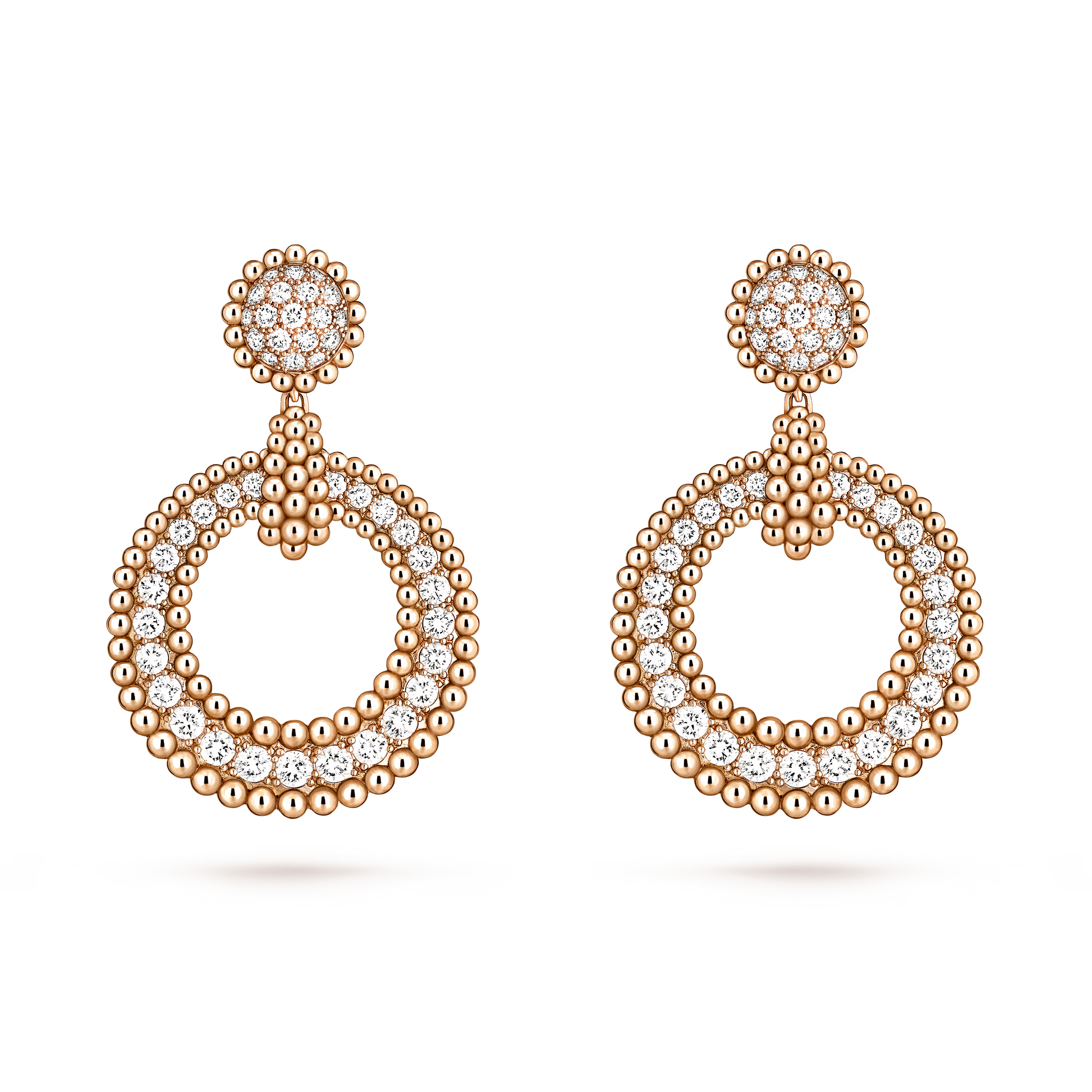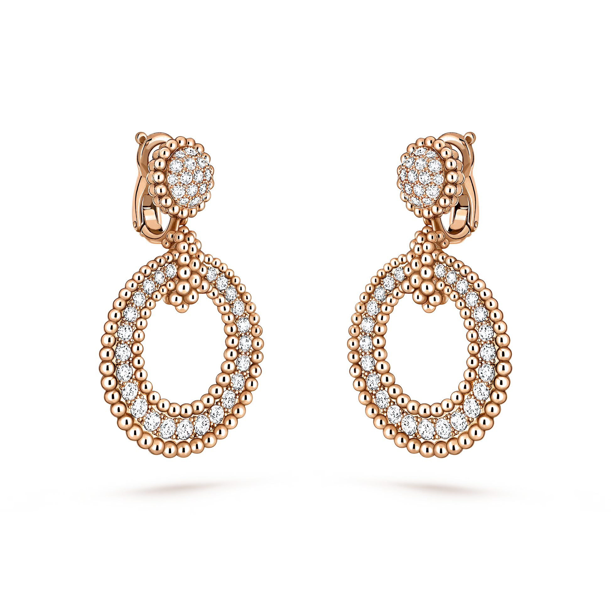 Perlée diamond earrings, crafted in 18K rose gold, feature expertly set round diamonds that enhance their timeless elegance.