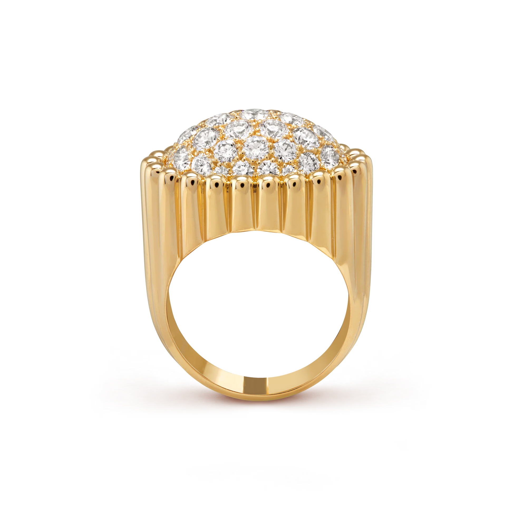 Perlée diamonds pavé ring, 18K yellow gold, round diamonds.