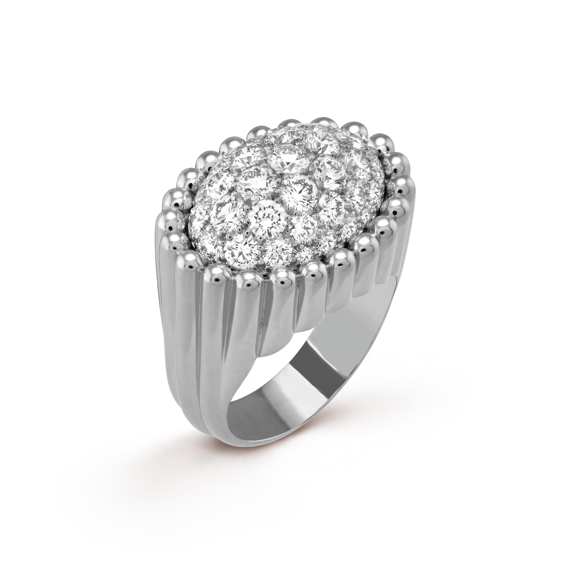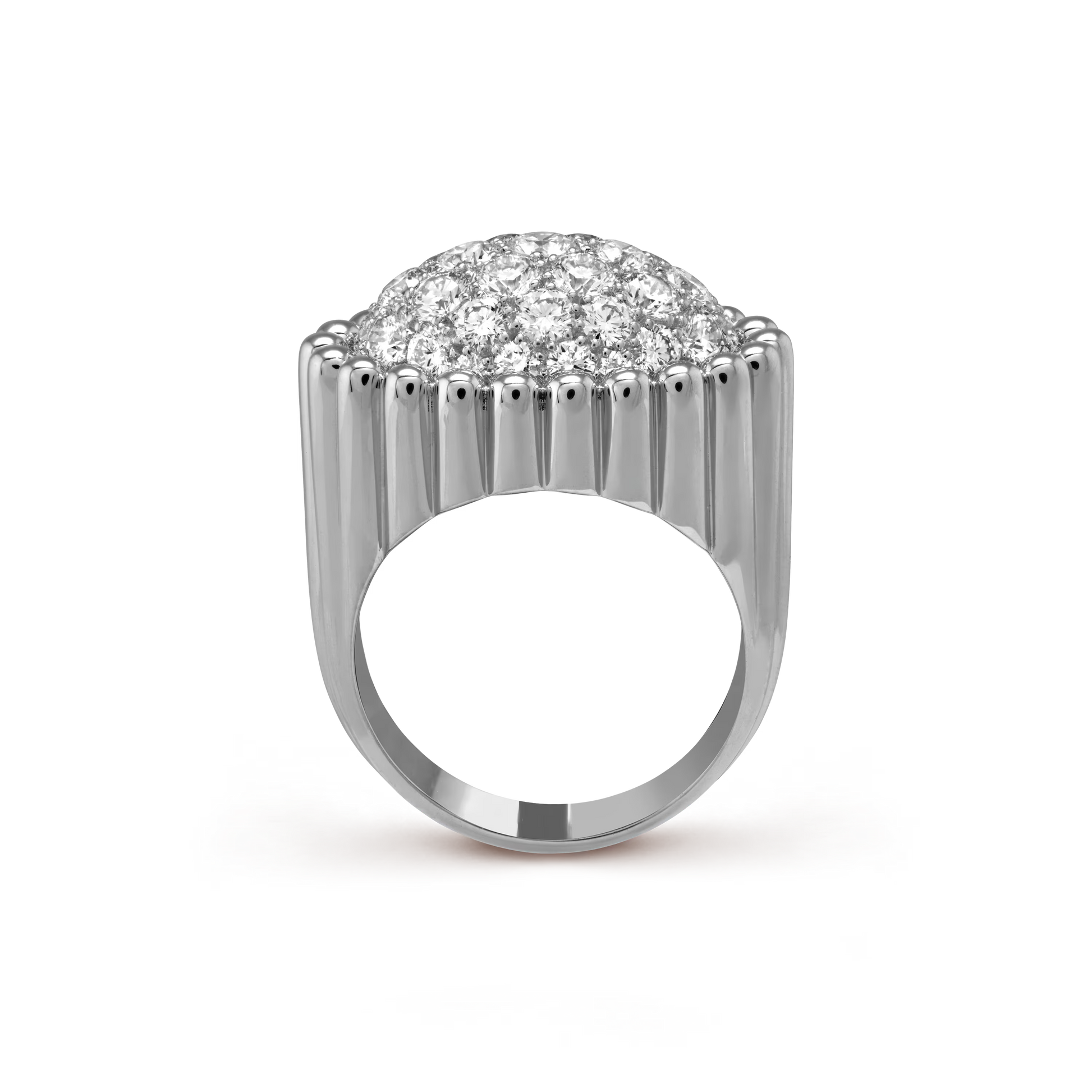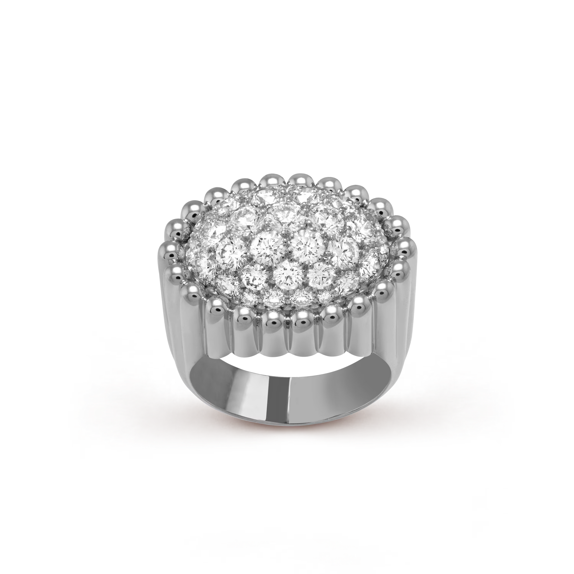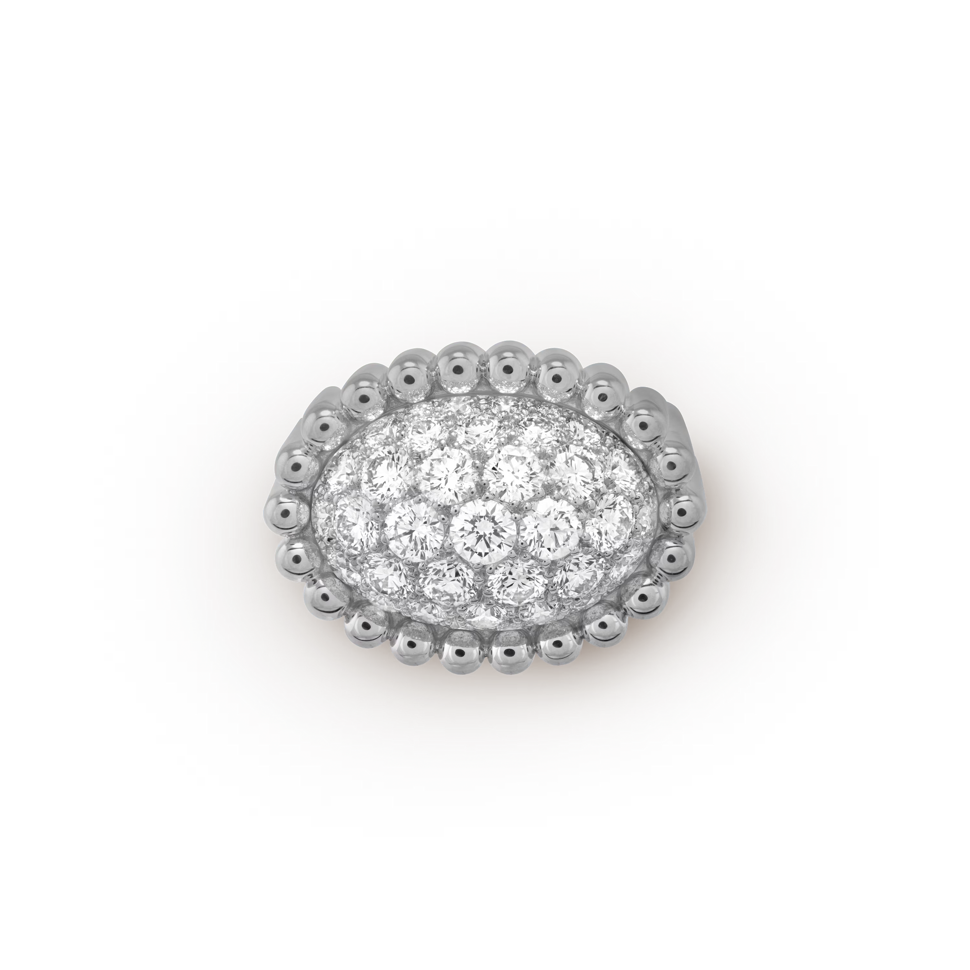 Perlée diamonds pavé ring, rhodium plated 18K white gold, round diamonds.