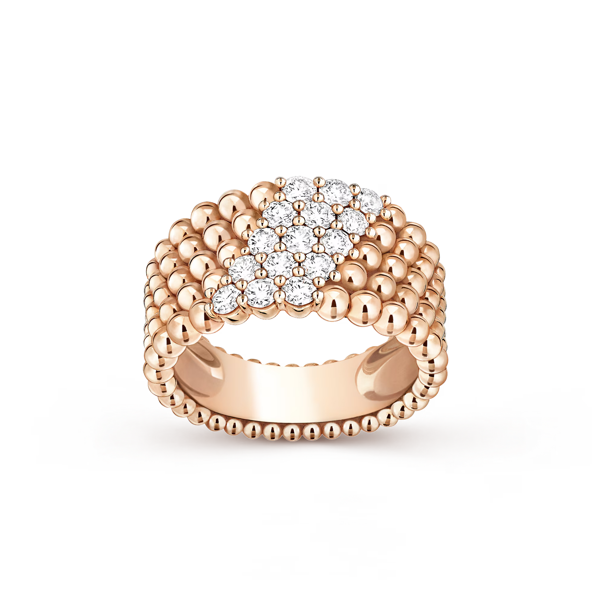 Elevate your collection with the Perlée diamonds ring, featuring five rows of meticulously set round diamonds that catch light from every angle. Crafted in luxurious 18K rose gold, this expertly designed piece combines timeless elegance.