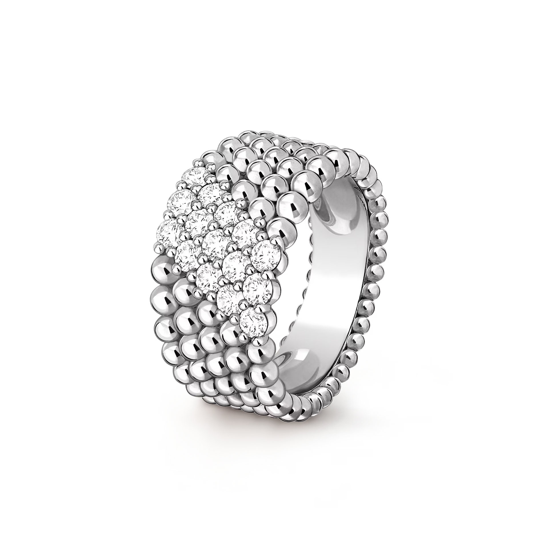 Elevate your elegance with the Perlée diamonds ring, featuring five meticulously crafted rows of shimmering diamonds set in rhodium-plated 18K white gold.