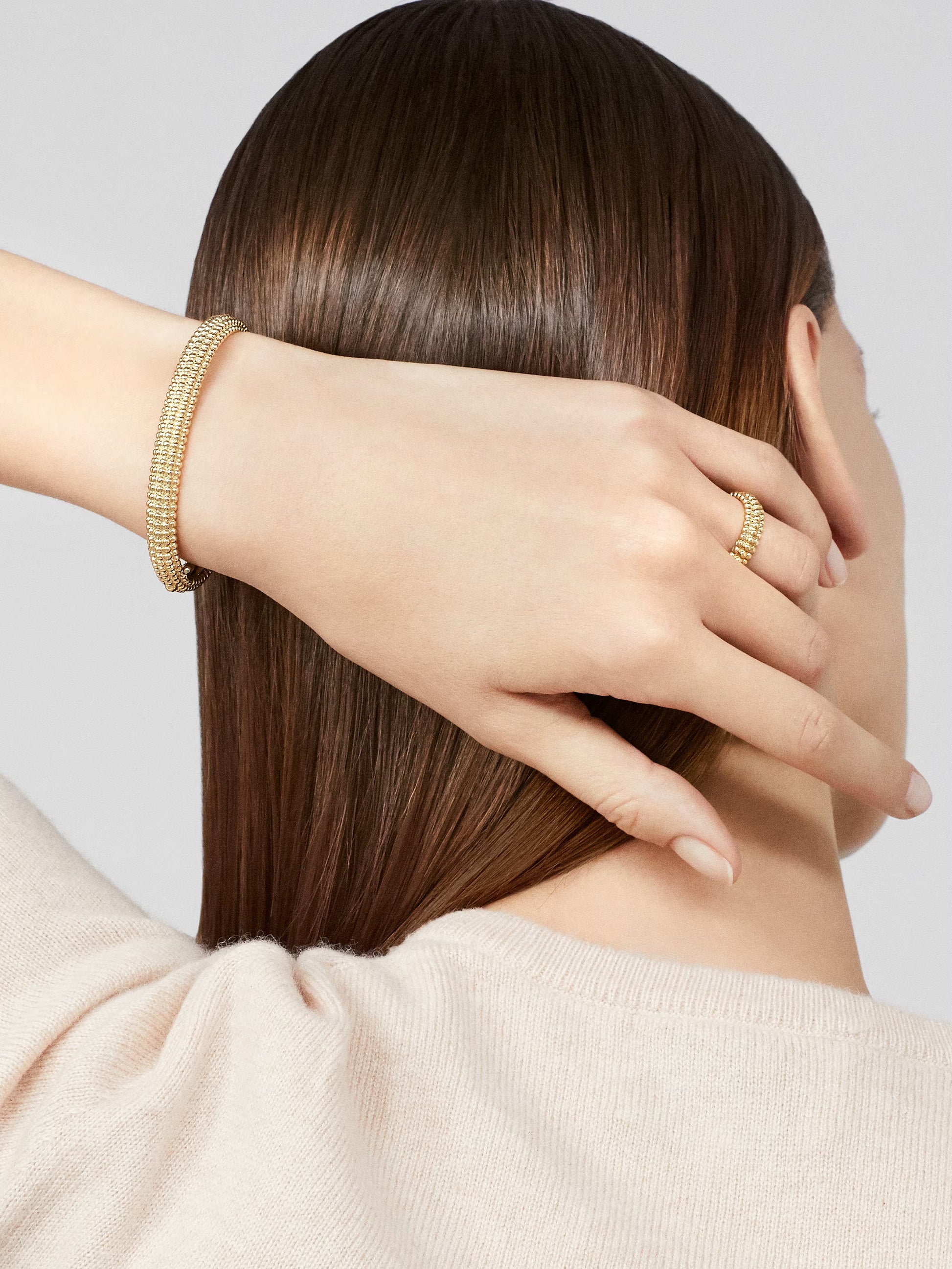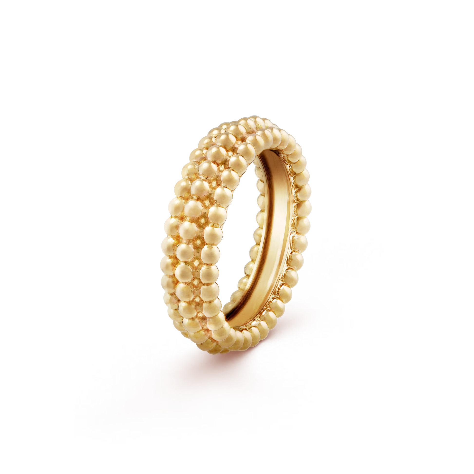 The Perlée pearls of gold ring features three meticulously crafted rows of delicate beading in luxurious 18K yellow gold.