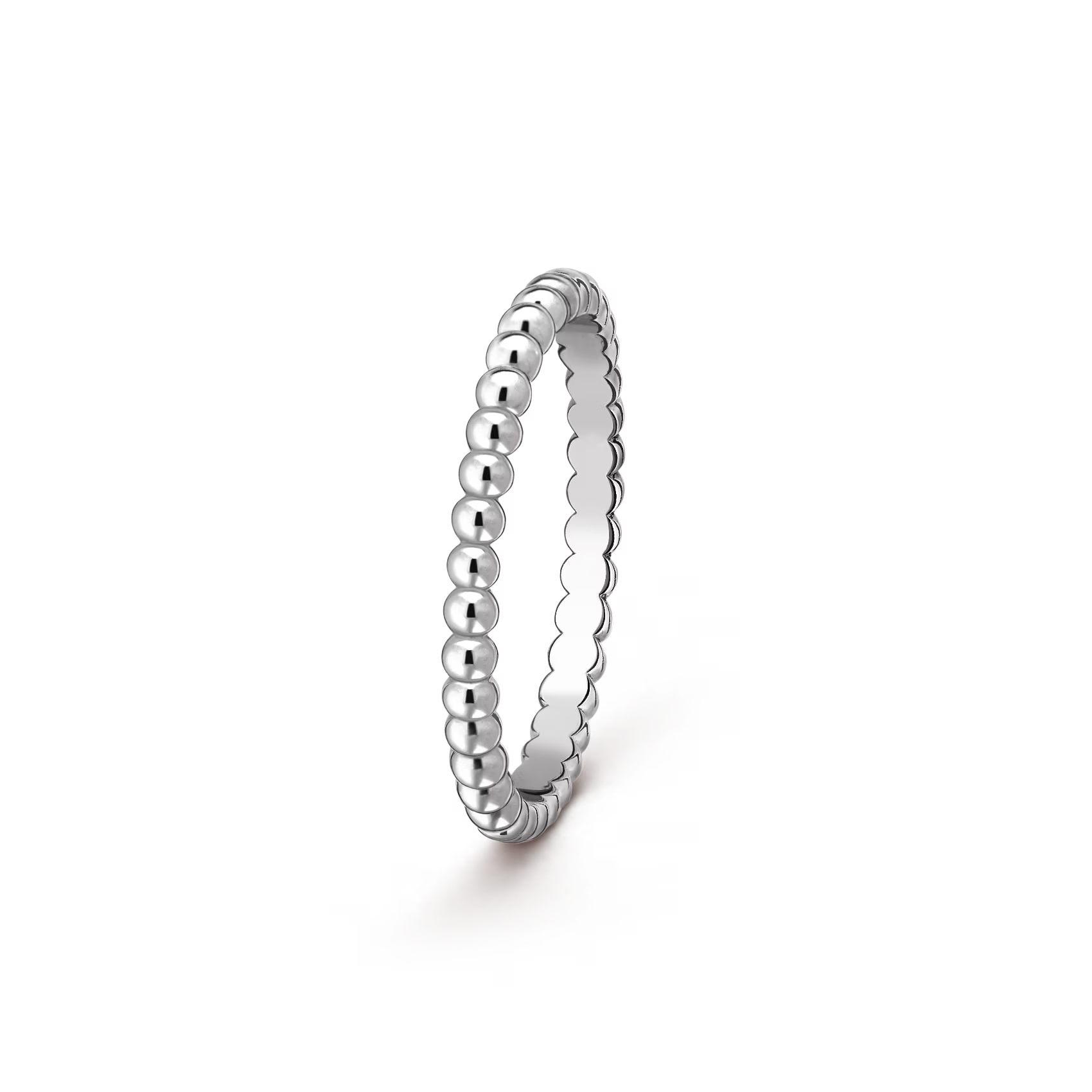 This elegant small model ring features the distinctive Perlée design, crafted in 18K white gold and plated with rhodium for enhanced durability and shine.