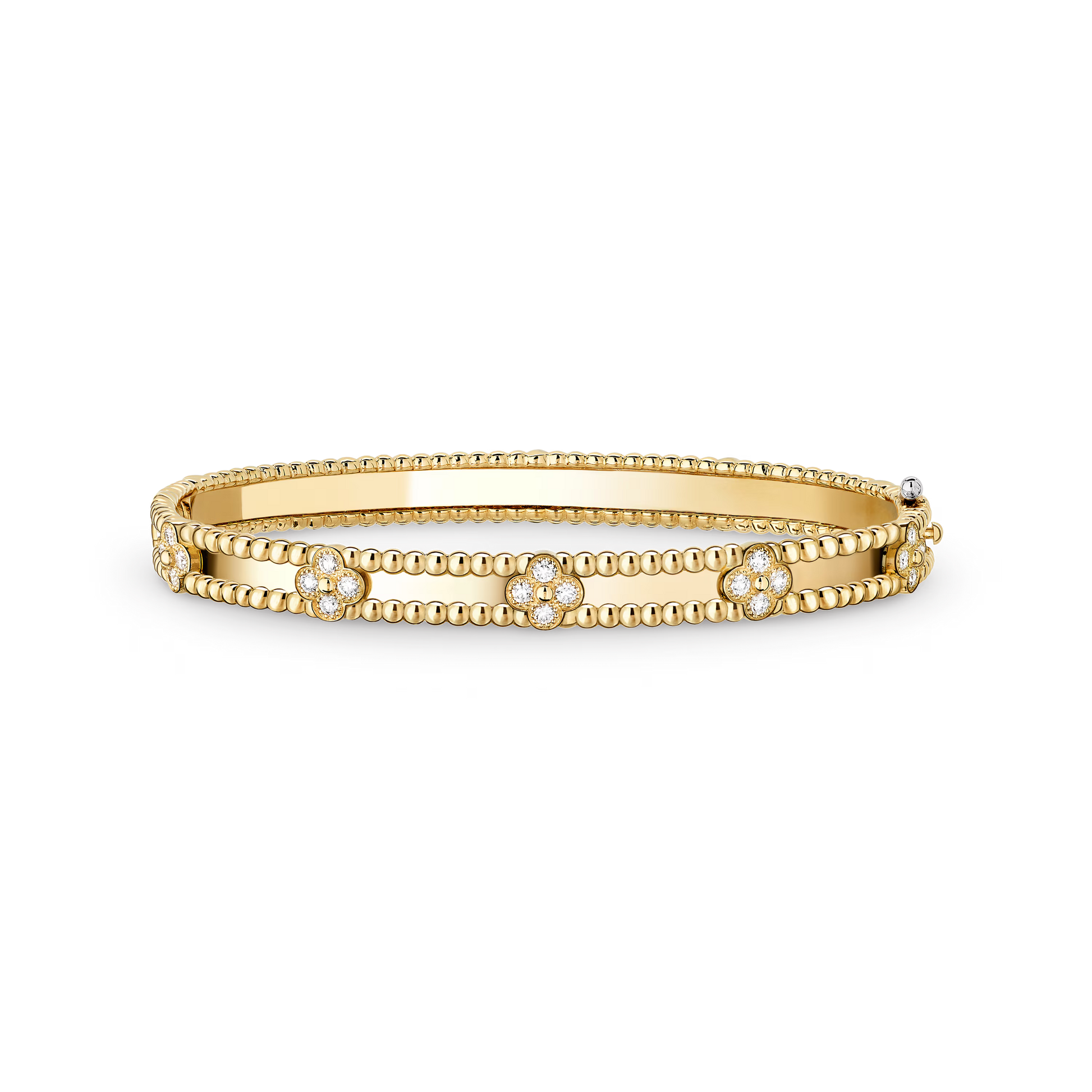 The Perlée Sweet Clovers bracelet in 18K yellow gold combines expert craftsmanship with elegant design. Ideal for elevating any outfit, this bracelet balances subtle luxury with a meaningful symbol of luck.