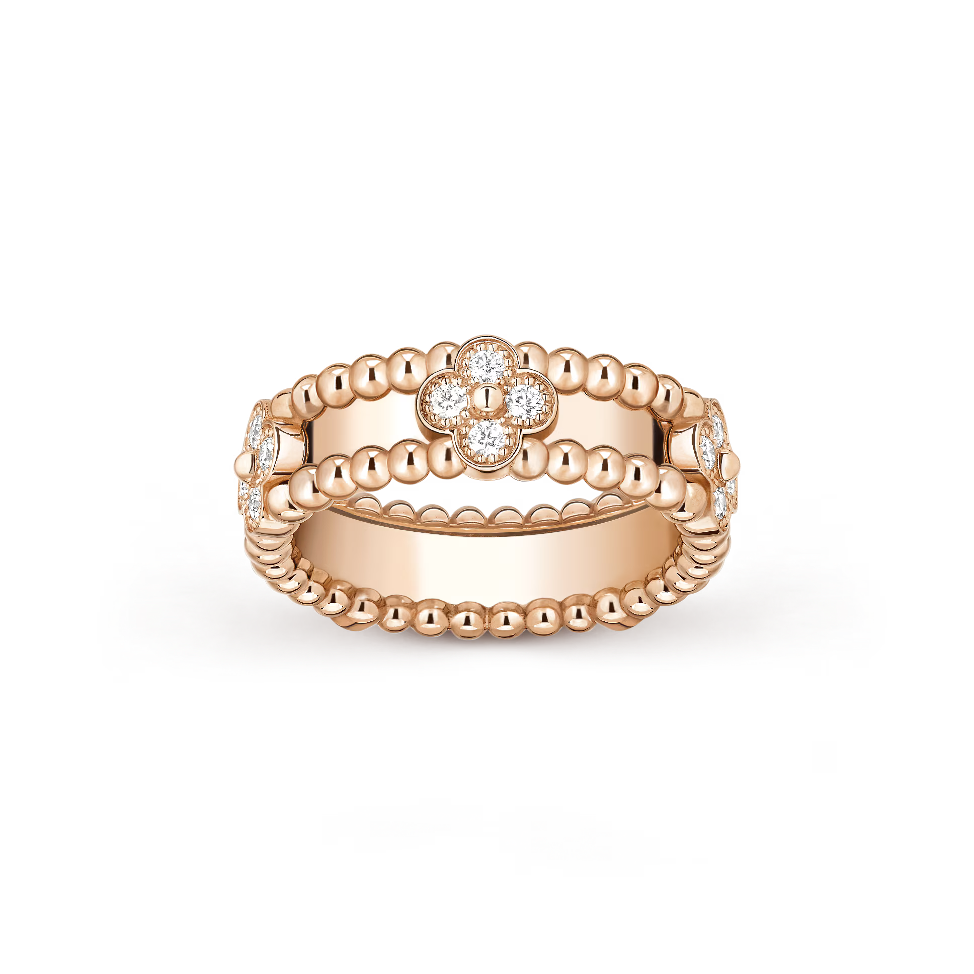 Perlée sweet clovers ring, 18K rose gold, round diamonds.