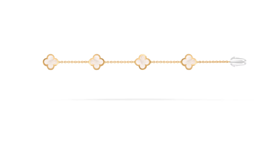 Pure Alhambra bracelet, 4 motifs, 18K yellow gold, white mother-of-pearl.