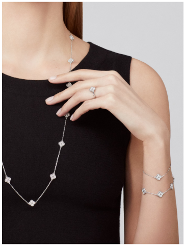 Sweet Alhambra bracelet, 1 motif, 18K white gold, round diamonds