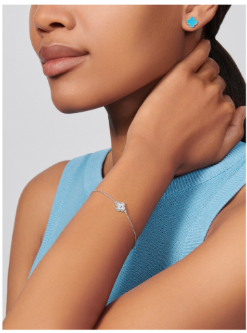 Crafted in 18K white gold, this Sweet Alhambra bracelet features a single delicate clover motif set with sparkling round diamonds for a refined touch of elegance.