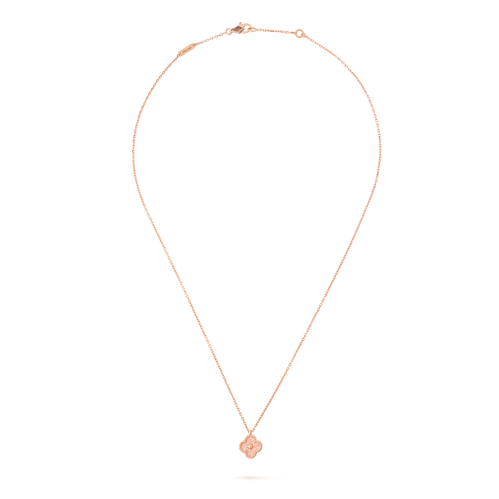 Crafted in 18K rose gold, this Sweet Alhambra pendant features a delicate clover motif with intricate beaded detailing for a soft and elegant touch. If you have any questions, please contact us on WhatsApp.