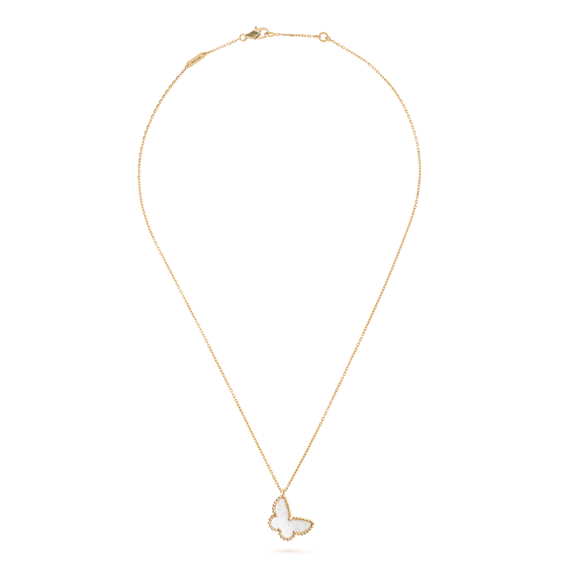 Crafted in lustrous 18K yellow gold, the Sweet Butterflies pendant features delicate butterflies accented with luminous white mother-of-pearl.