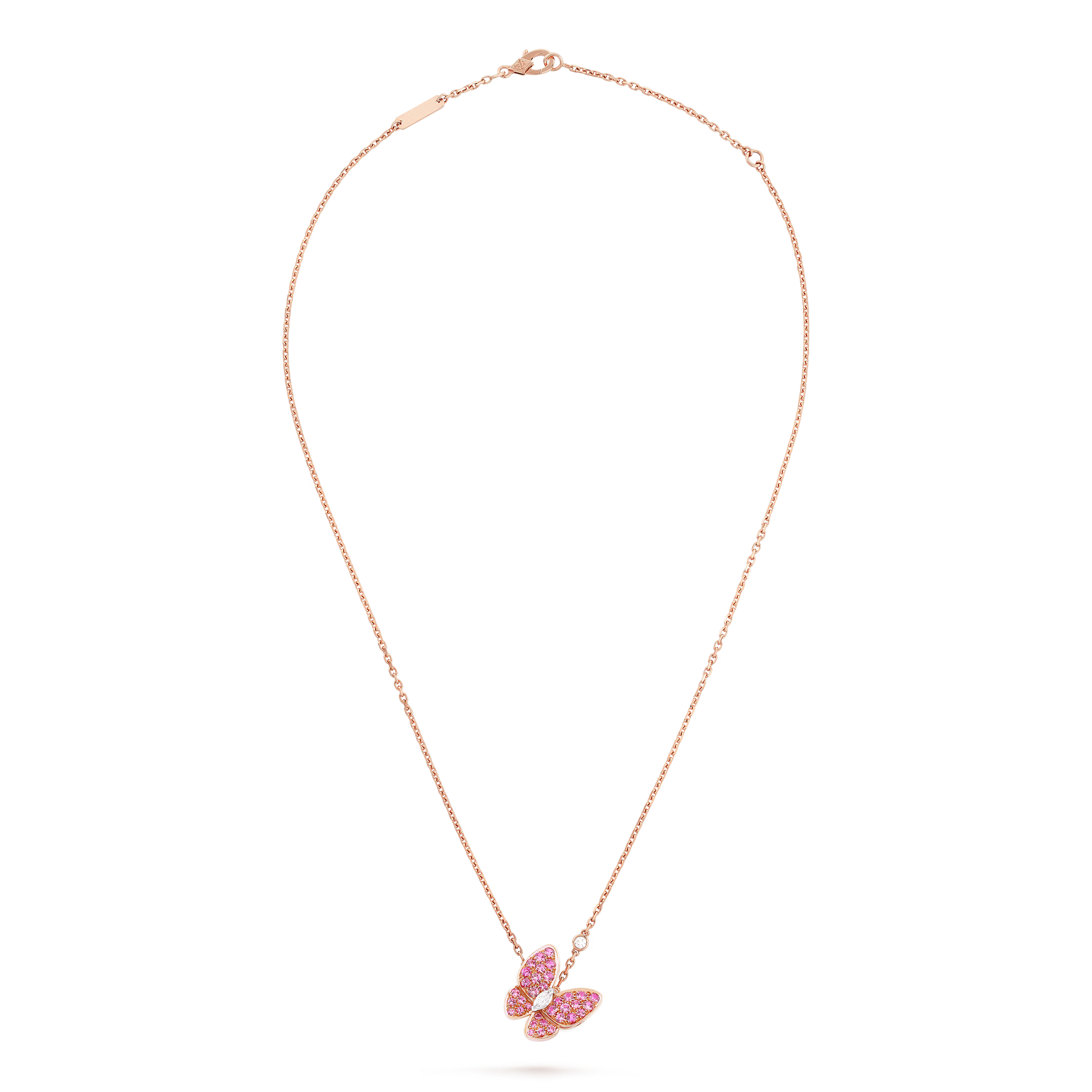 Two Butterfly pendant, 18K rose gold, rhodium plated 18K white gold, round and marquise-cut diamonds.