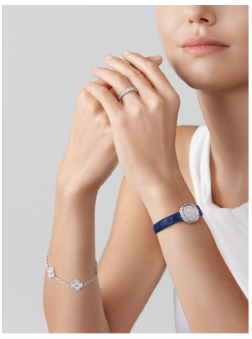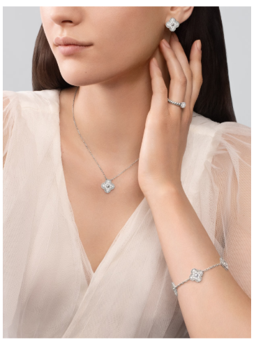 Vintage Alhambra bracelet, 5 motifs, rhodium plated 18K white gold, round diamonds