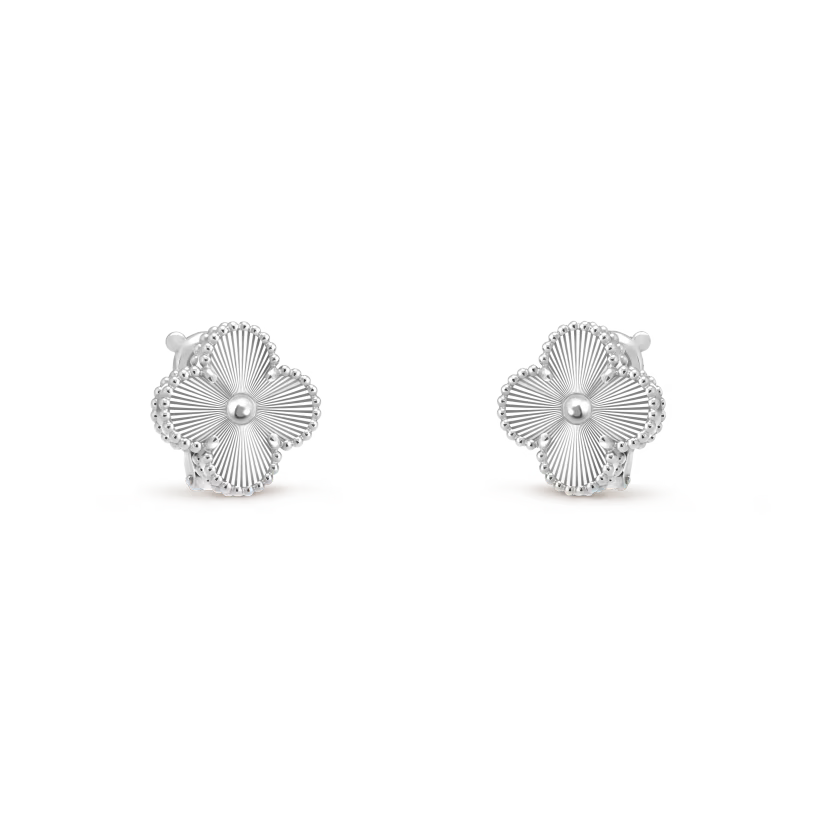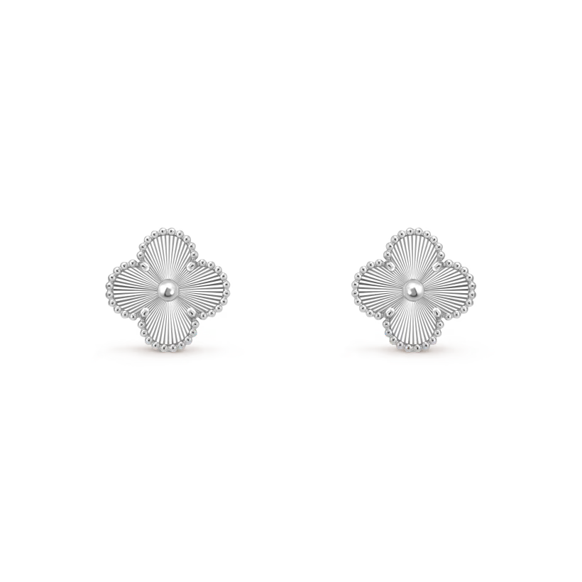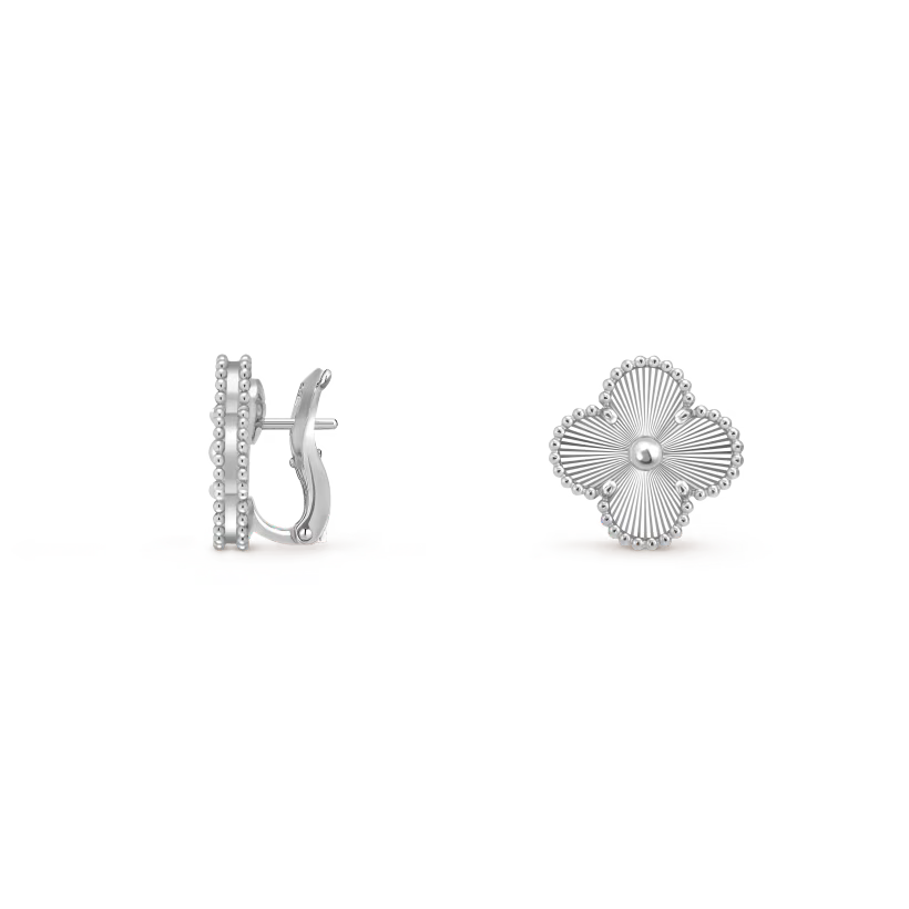 Vintage Alhambra earrings, guilloché rhodium plated 18K white gold.