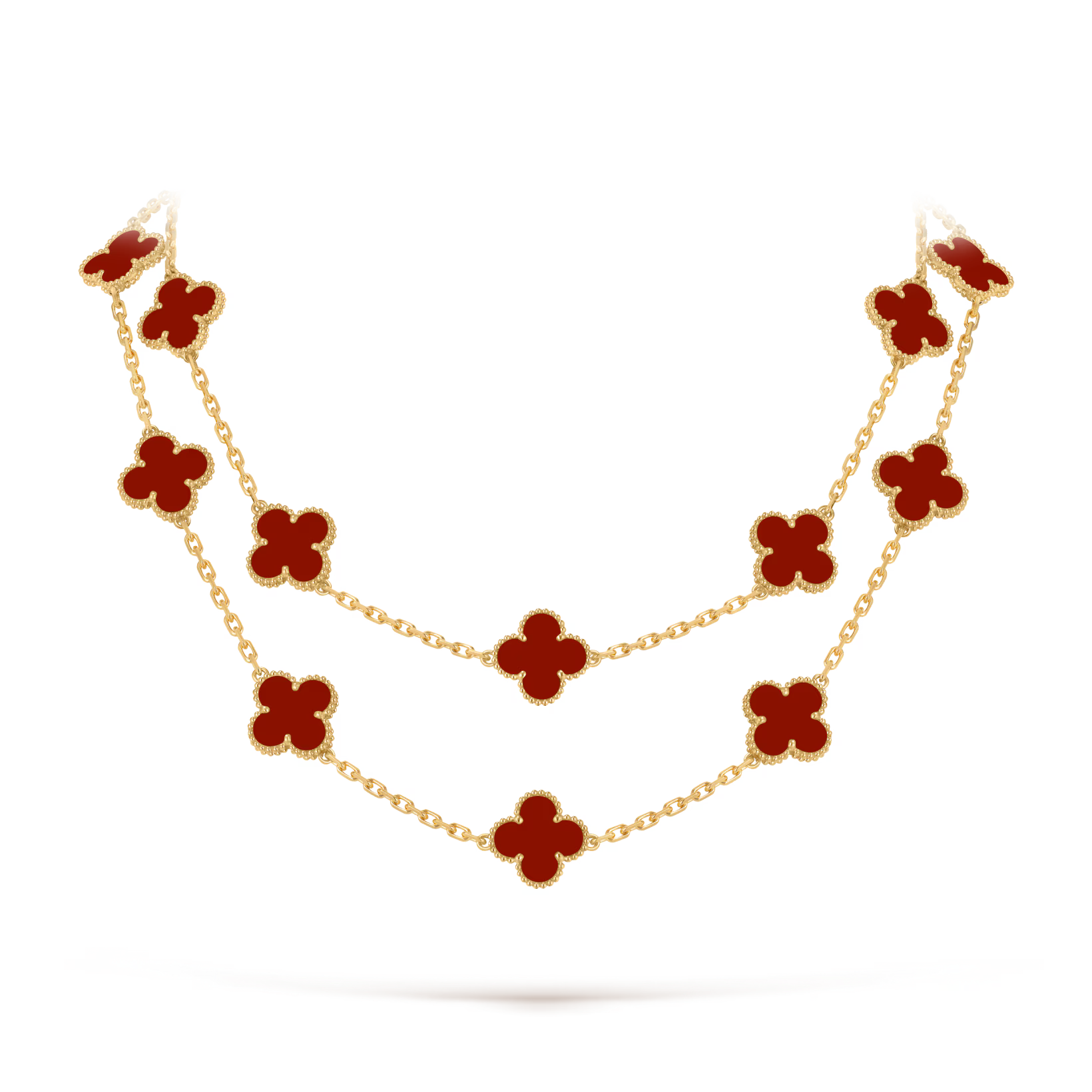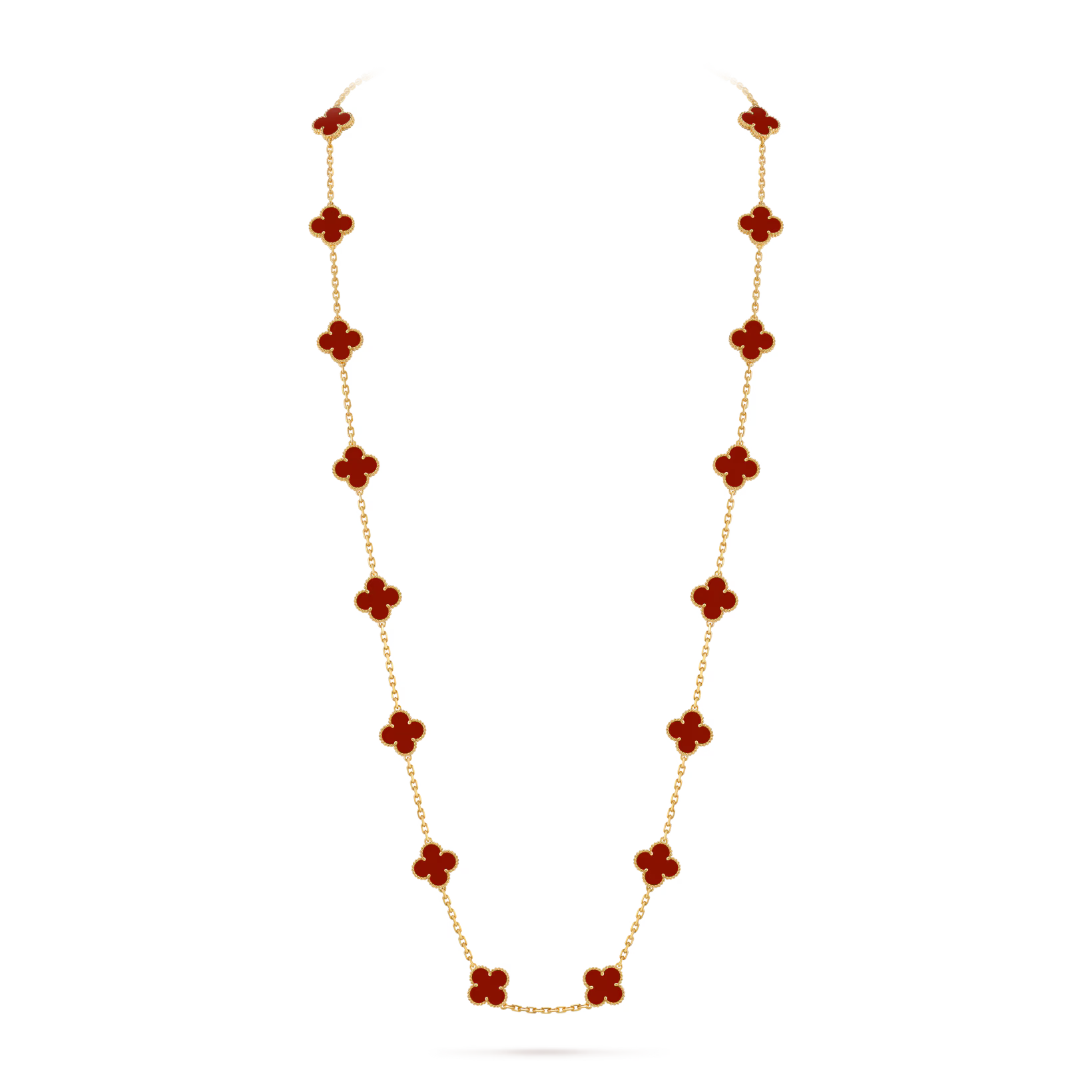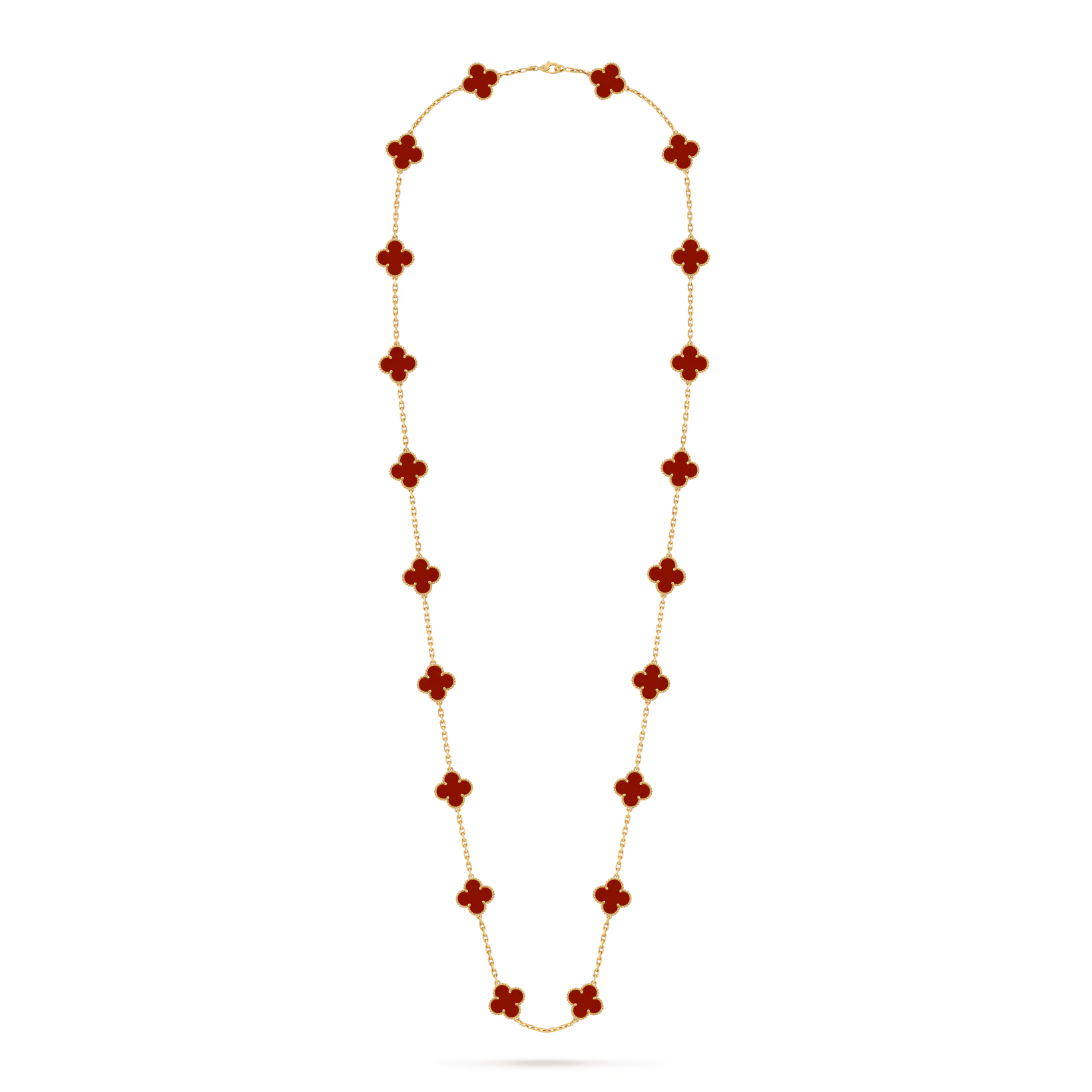 Vintage Alhambra long necklace, 20 motifs, 18K yellow gold, carnelian.