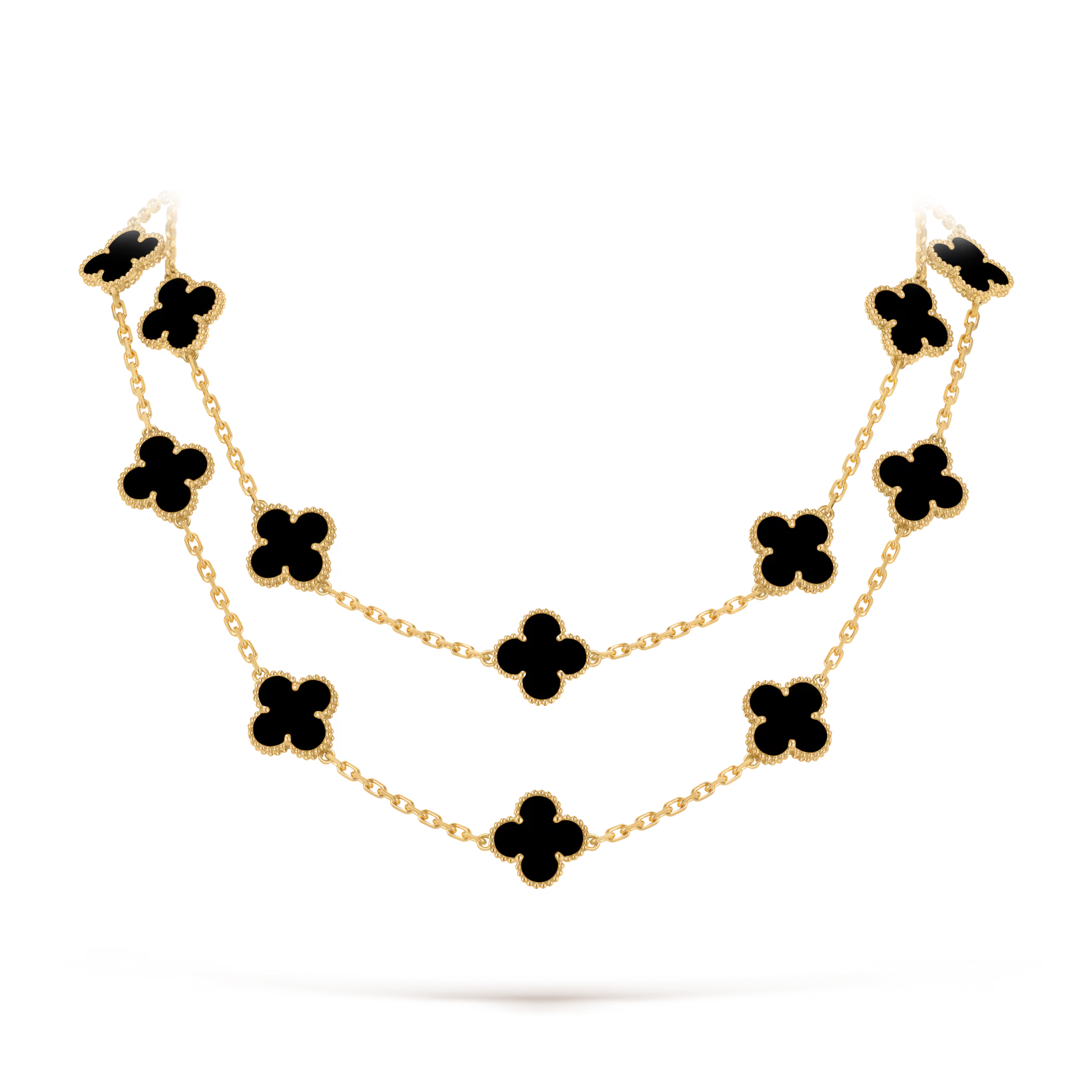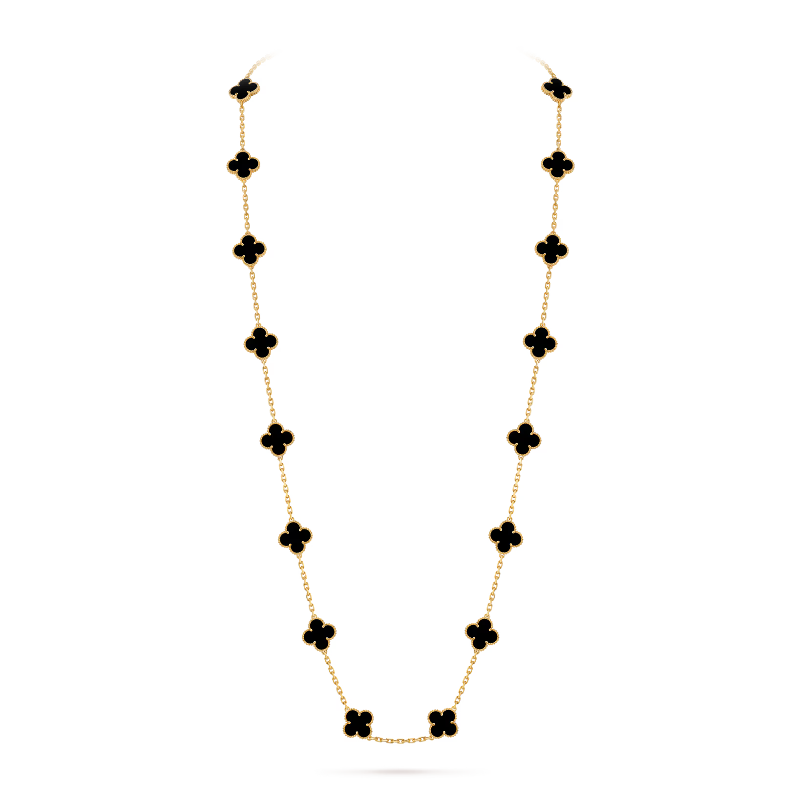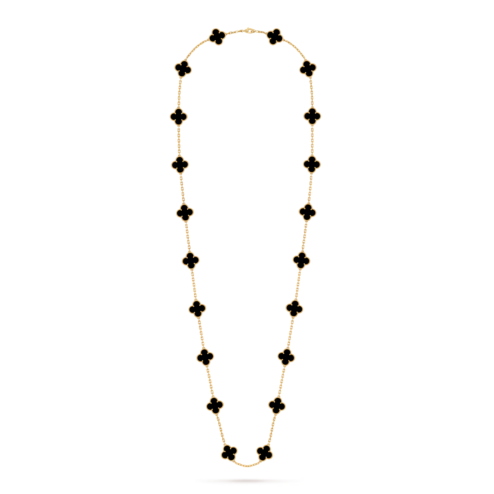 Vintage Alhambra long necklace, 20 motifs, 18K yellow gold, onyx.