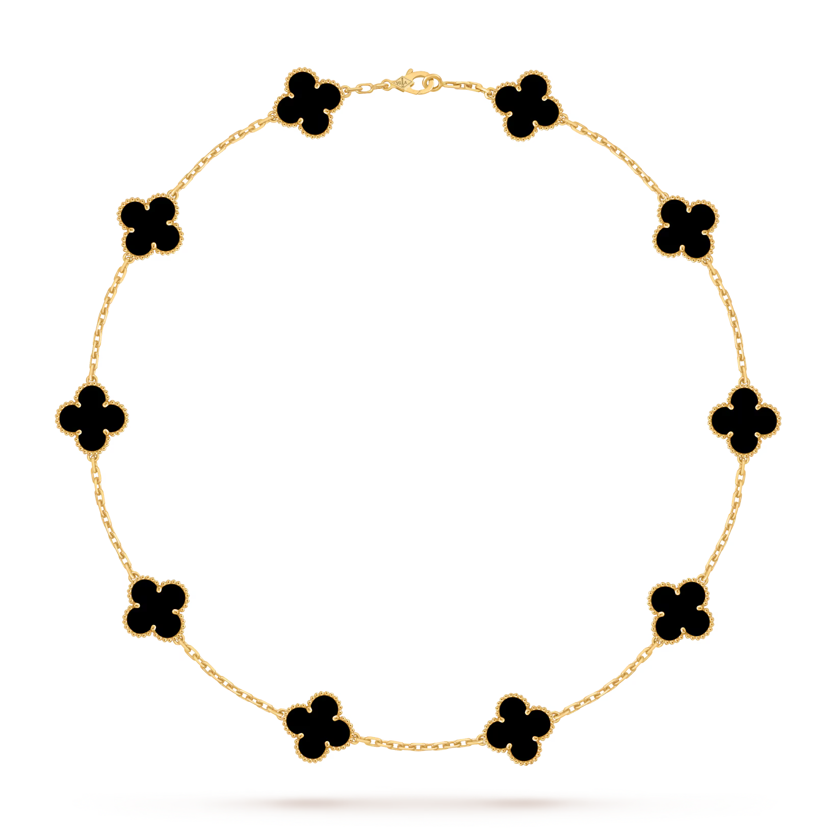 Vintage Alhambra necklace, 10 motifs, 18K yellow gold, onyx.