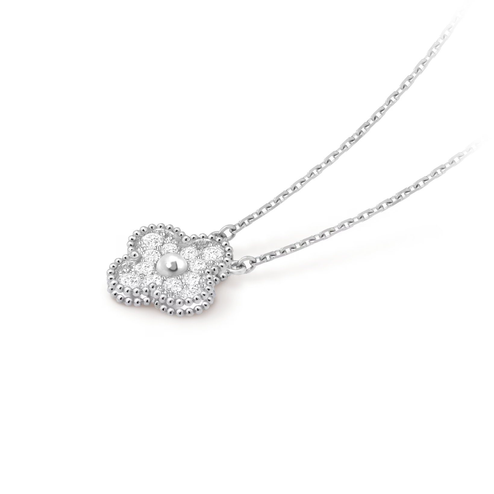 Vintage Alhambra pendant, 18K white gold, round diamonds