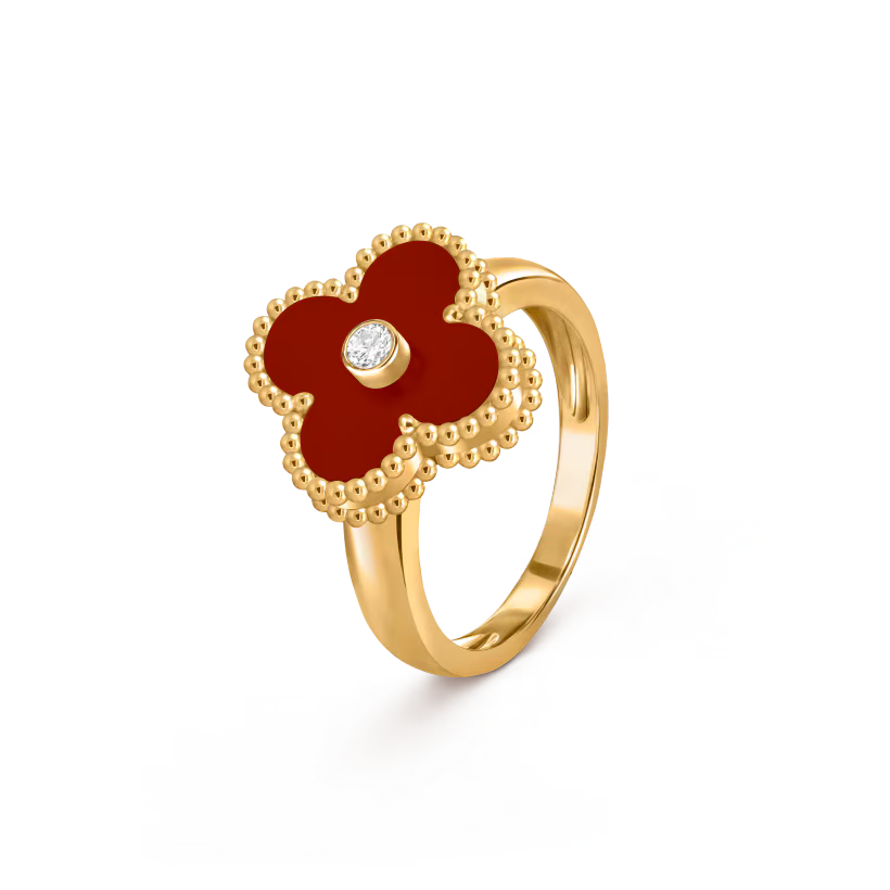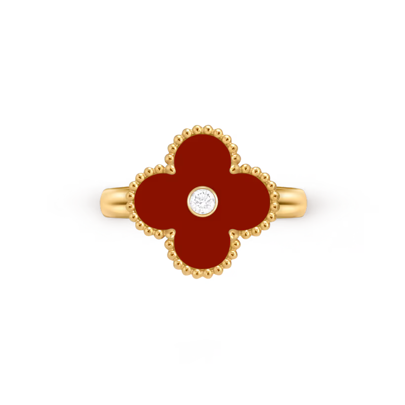 Vintage Alhambra ring, 18K yellow gold, carnelian, round diamond
